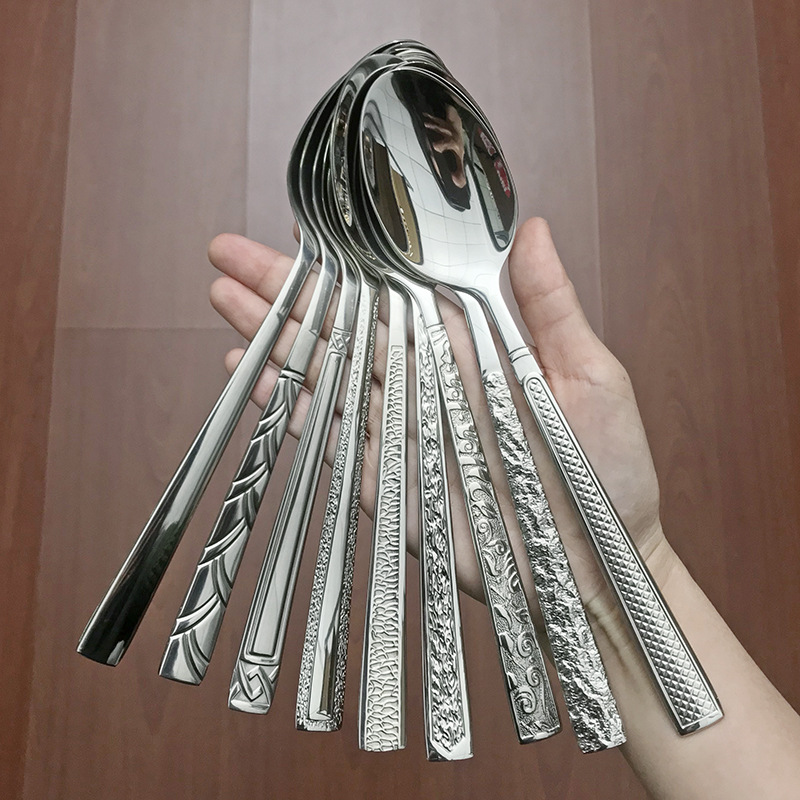 ステンレススプーン成人家庭用食事スプーン先スプーン厚さ角柄スプーン多目的ホテル食器スプーン