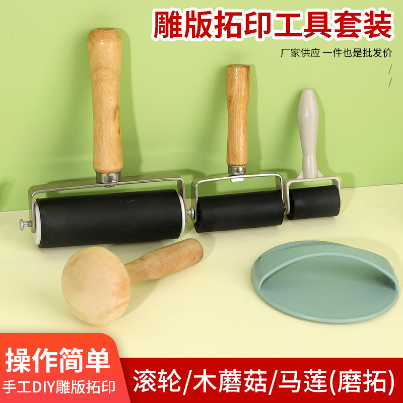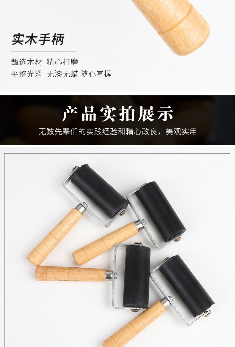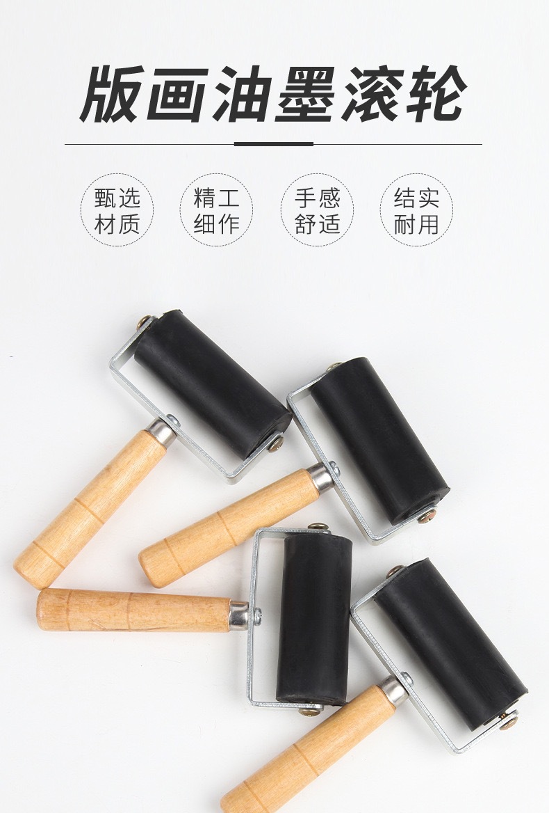 クロスボーダープリント道具ゴムローラーインクローラー木柄ゴムローラー水拓画工具手作り美術馬蓮
