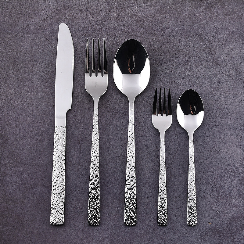 430ステンレスハンマー紋方尾ハンドルクロスボーダー電気商食器洋食レストランステーキナイフフォークスプーン