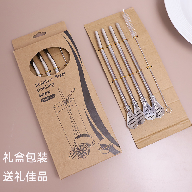 304 ステンレス鋼フィルターストロースプーン北欧スタイルストレートカーブストローセット工場直販