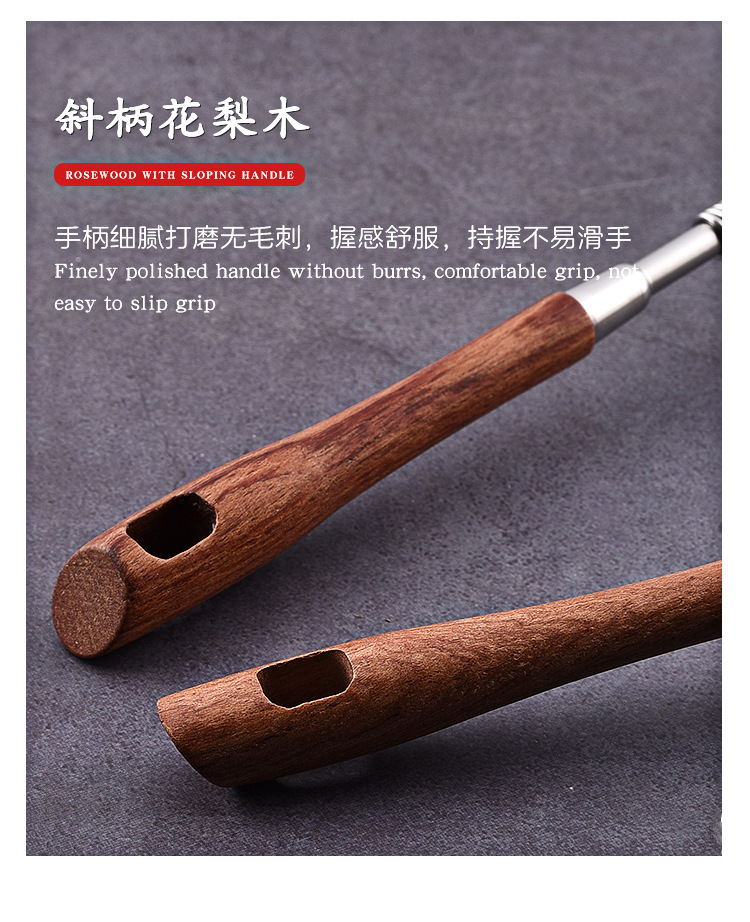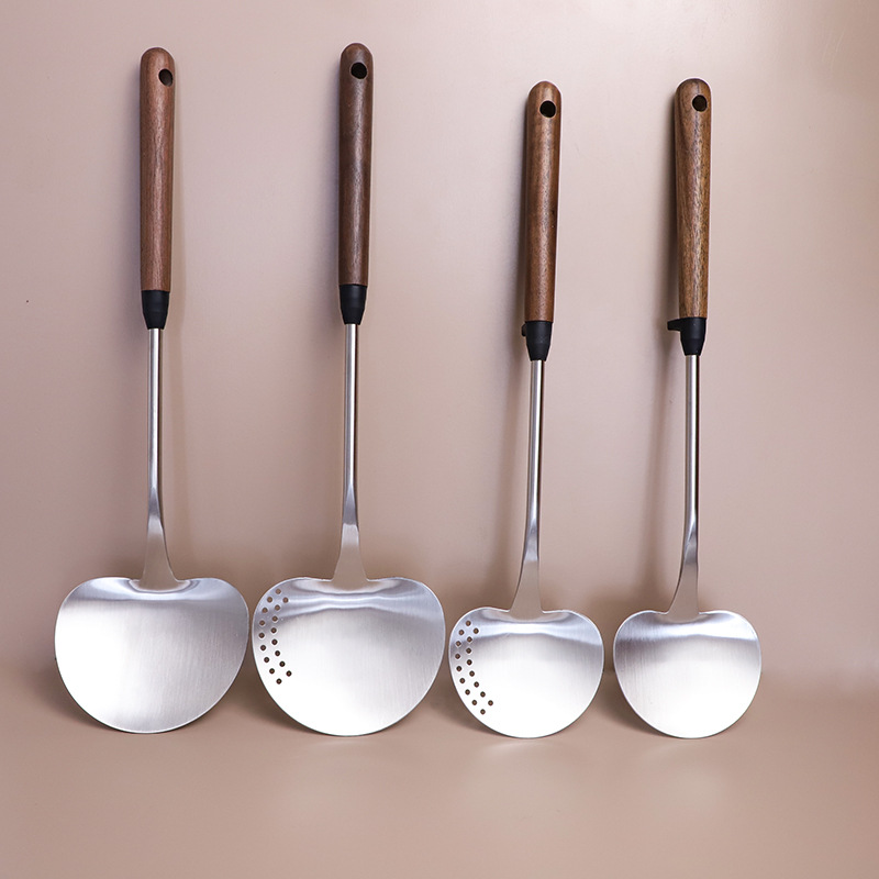 クロスボーダー 304 ステンレス鋼の厚みのあるキノコスパチュラクルミ材ステンレス鋼家庭用調理ロングハンドルスパチュラ