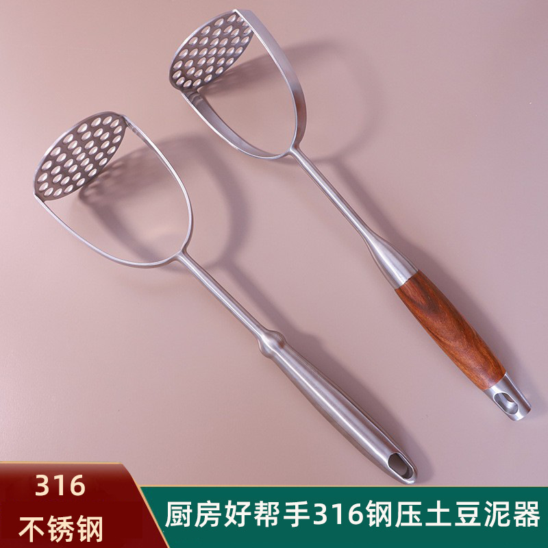 304 ステンレス鋼のポテトマッシャーライムウッドハンドルスイートポテトマッシャーポテトプレス