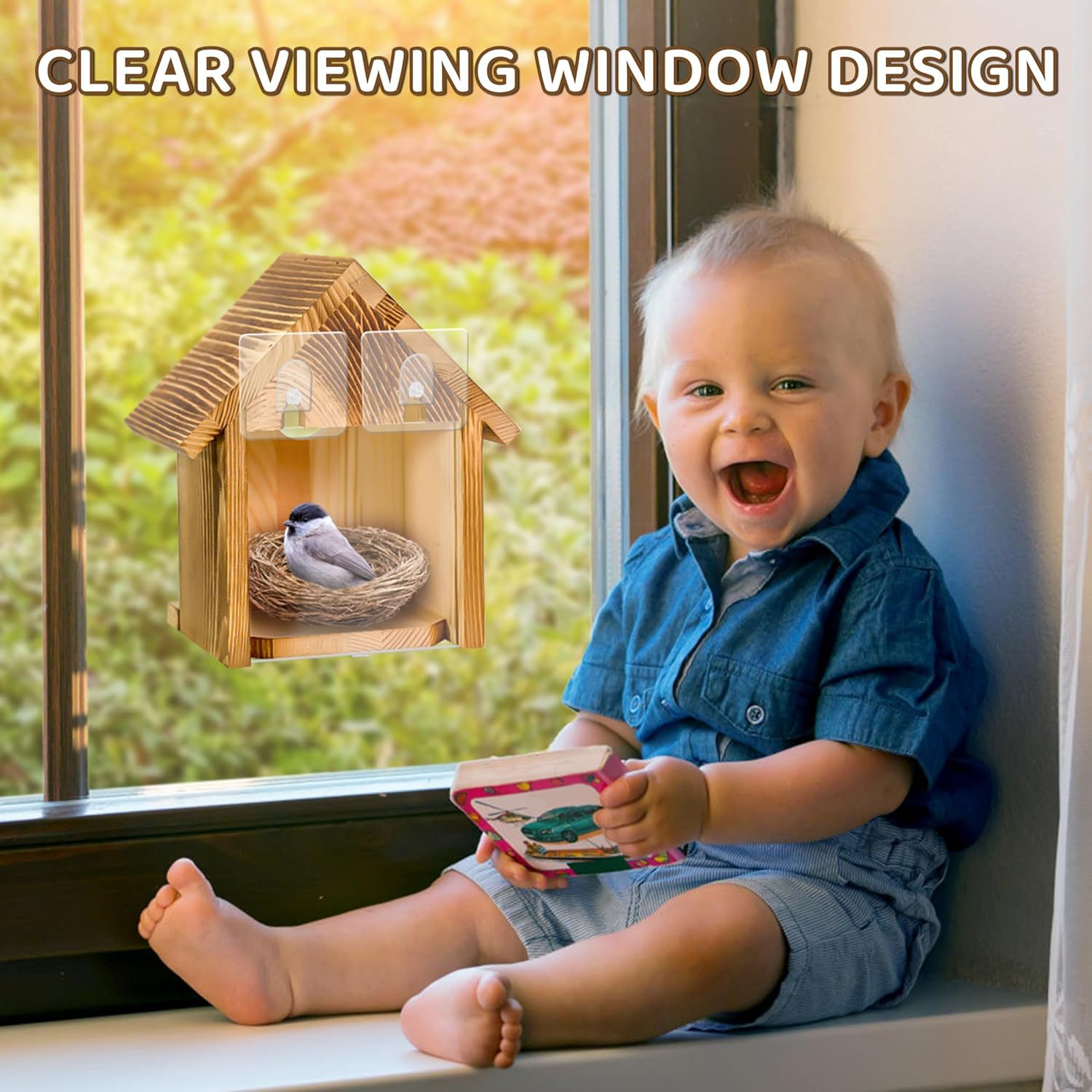 木製バードハウス屋外バードハウスペットフィーダー屋内観賞用繁殖ボックスアクリル透明吊り下げベルト吸引