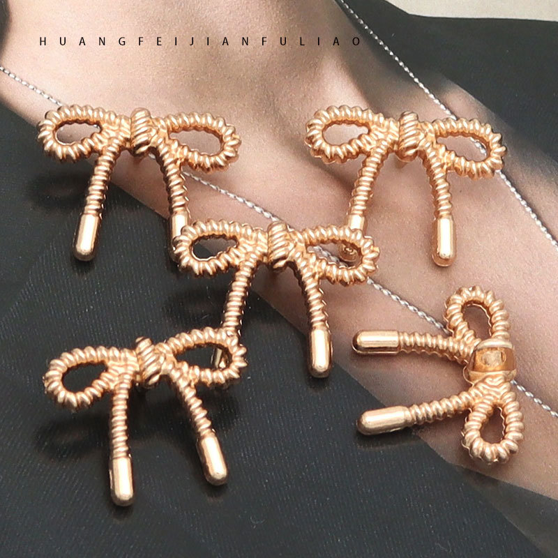 高级感立体蝶結びメタルボタン小香风ニットシャツスーツプルオーバーセーターゴールド色ボタン