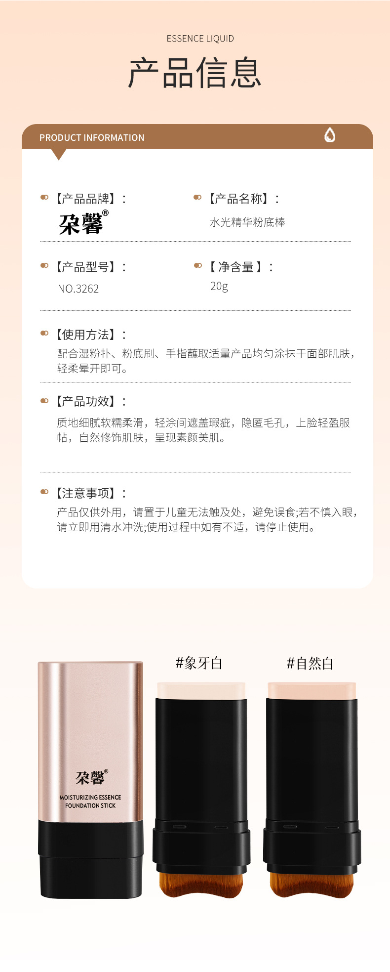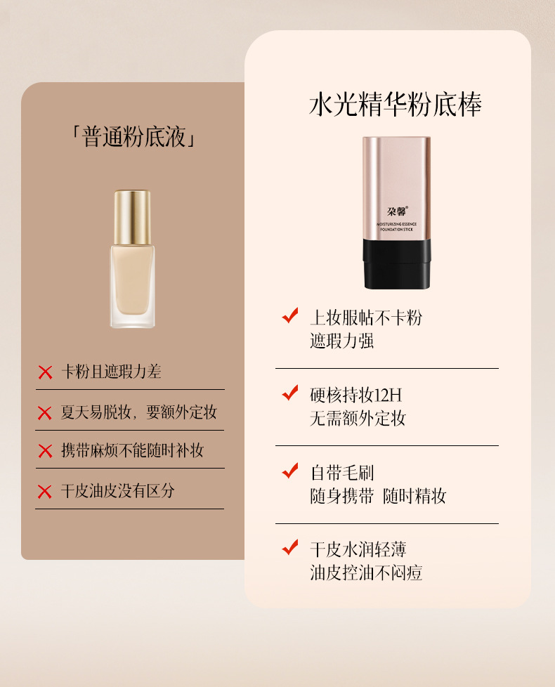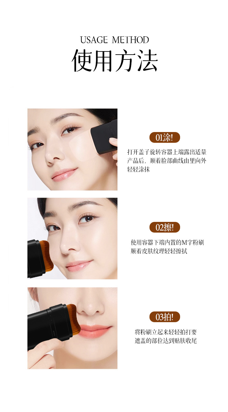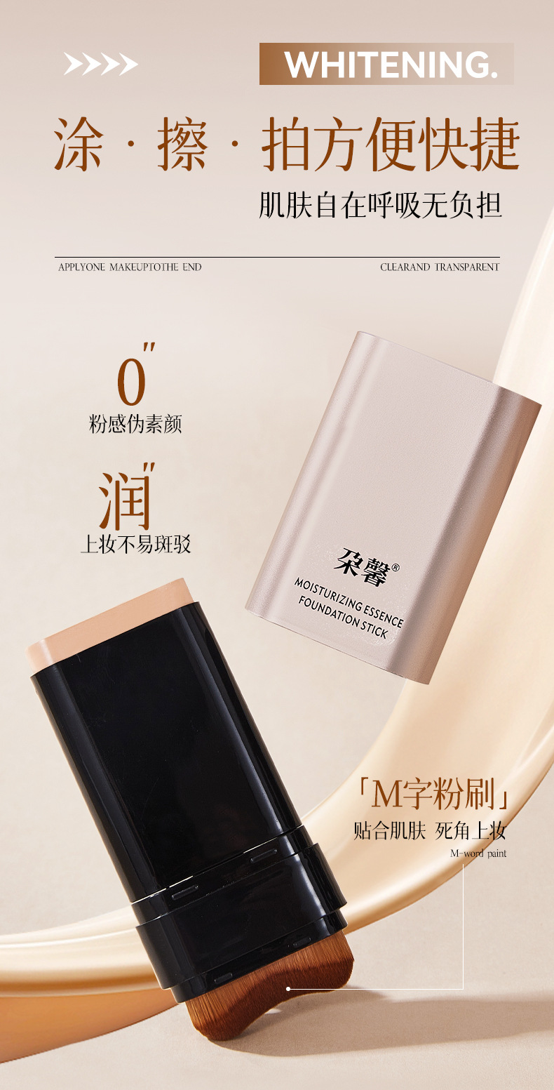 爆款双头粉底棒水光肌遮瑕轻薄不脱妆不卡粉橡皮擦粉底棒带刷子