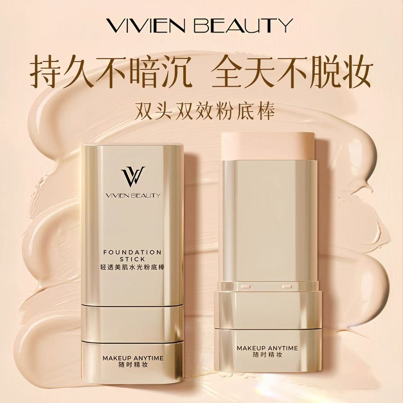 VIVIENBEAUTY轻透美肌VV双头粉底棒遮瑕棒提亮肤色控油防水不脱妆