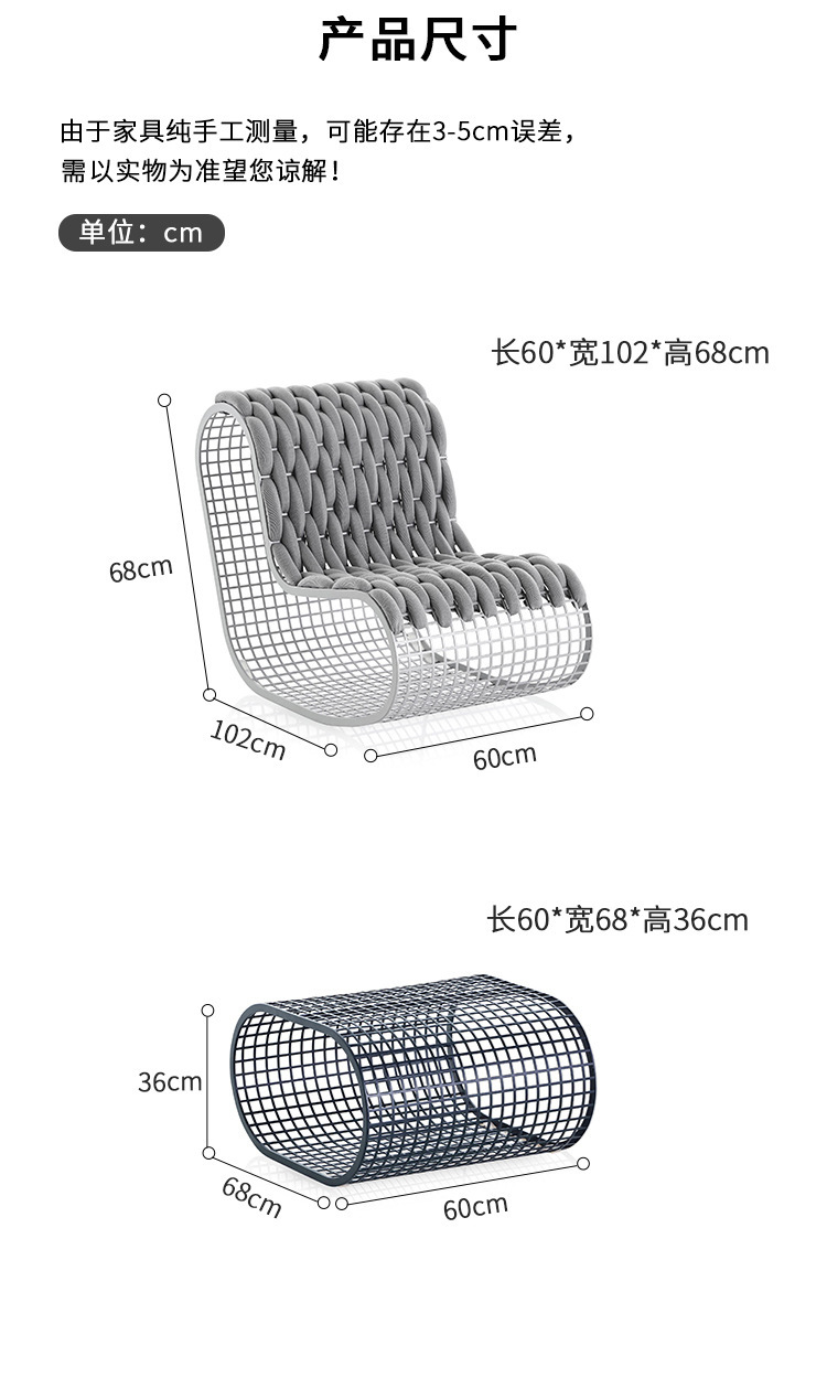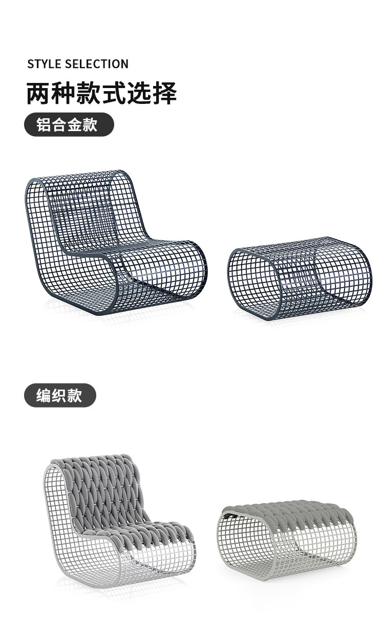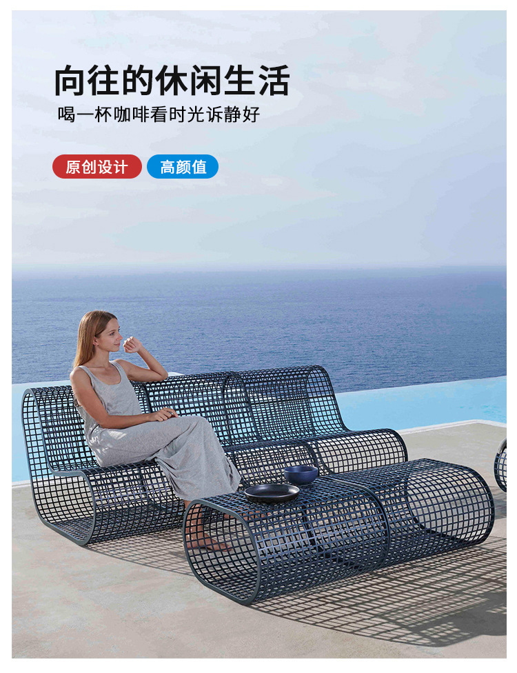 屋外レジャーチェアソファ中庭テラス景勝地防雨日焼け防止金属クリエイティブ特殊形状バルコニーシングルチェア組み合わせ