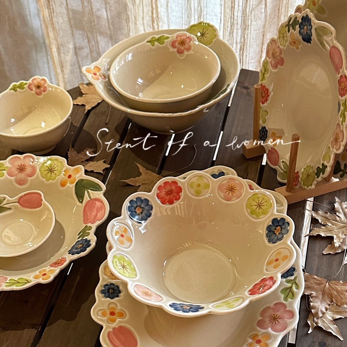 可爱小清新花边草帽意面盘陶瓷釉下彩ins风盘子菜盘家用饭盘汤盘