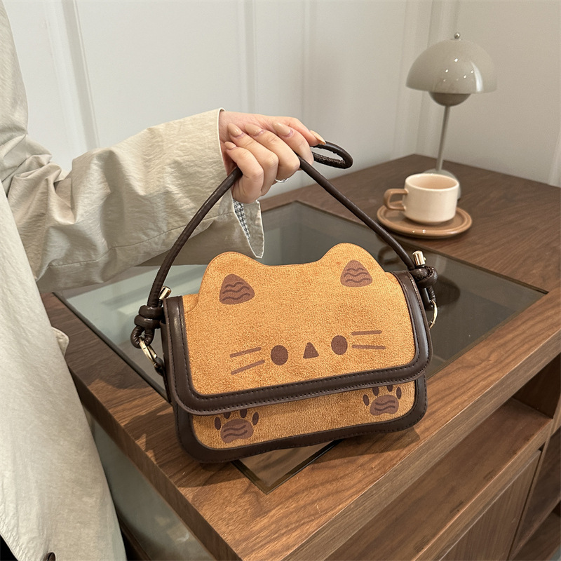 复古小猫可爱百搭单肩包女小众设计感休闲个性高级质感斜挎包