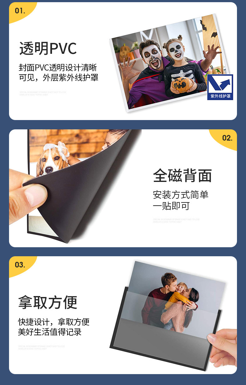 跨境亚马逊高透亚克力相框强磁磁力冰箱贴画框吸磁拍立得照片框