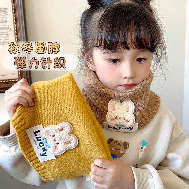 熊超萌男女童ニットマフラー冬の韓国版はウサギの毛をまねてかわいい保温防風子供のマフラーを厚くします。