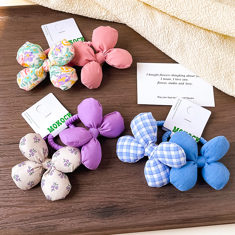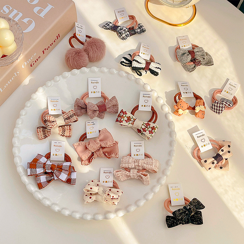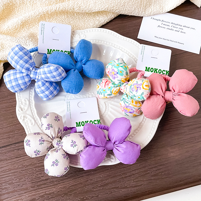 子供の髪の輪の女の子の新型の花の蝶結びの布芸は綿の高い馬尾の紐の女の子の皮の筋の髪の紐を満たします。