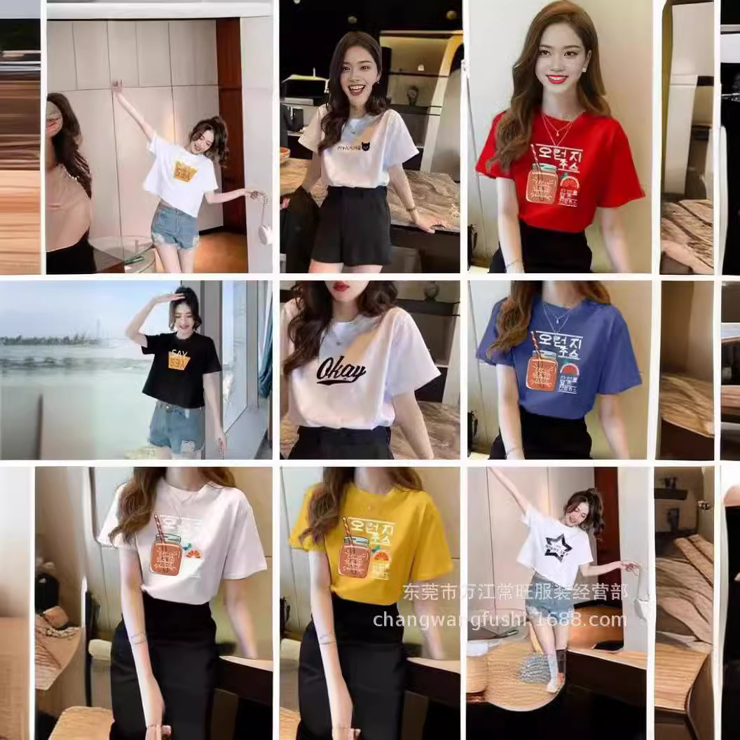 1688卸売り服2元から3元卸売り市場夏婦人半袖tシャツ直播ソース工場尾品
