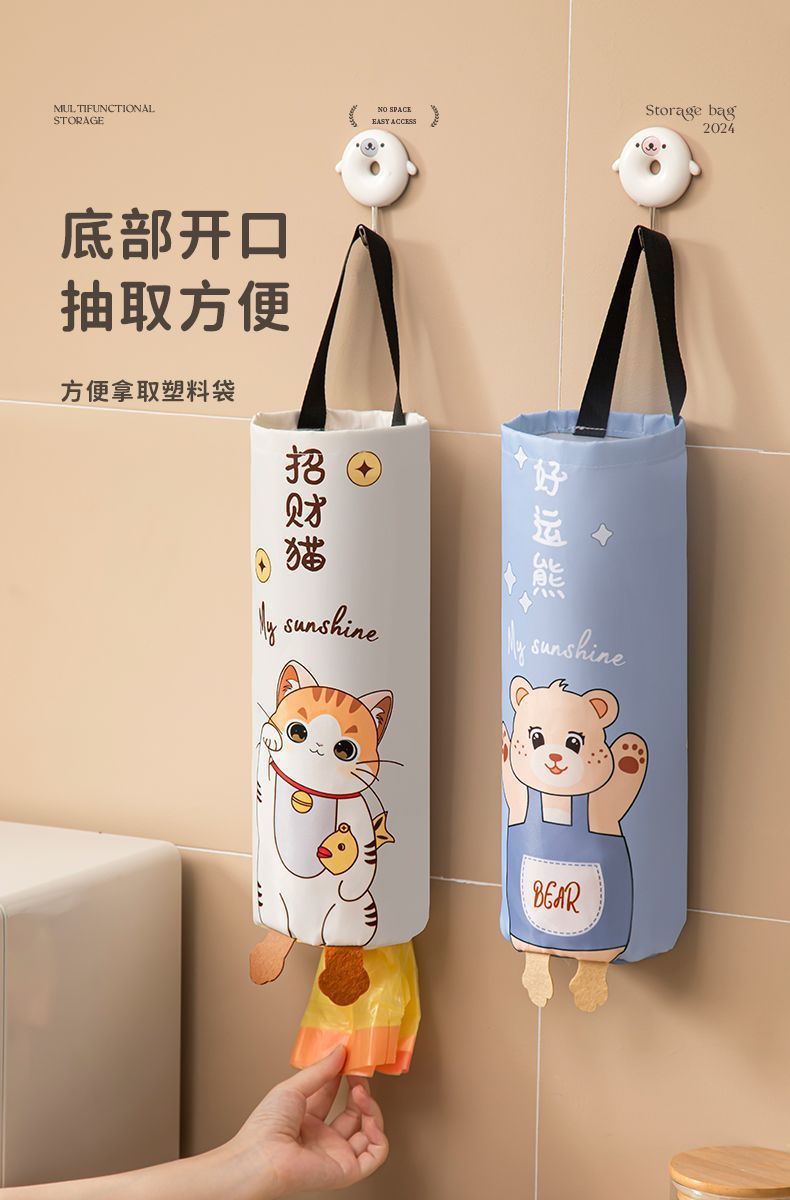 初めてプラスチック袋を入れたアニメゴミ袋収納袋キッチン大容量家庭用壁掛け収納掛け袋神器