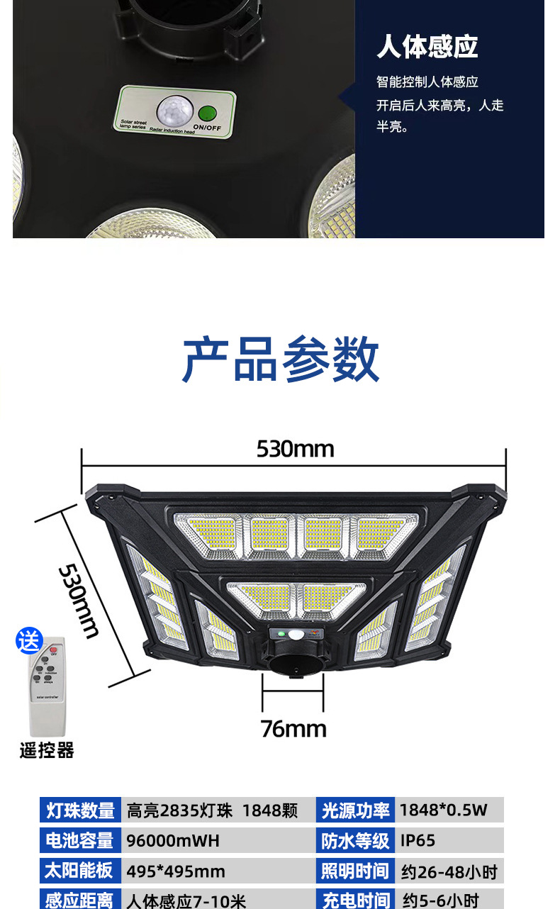 全体の寸法 スクエアハイライトソーラーガーデンライト1000W