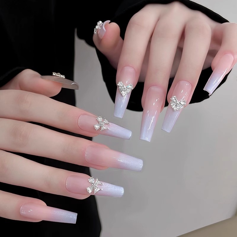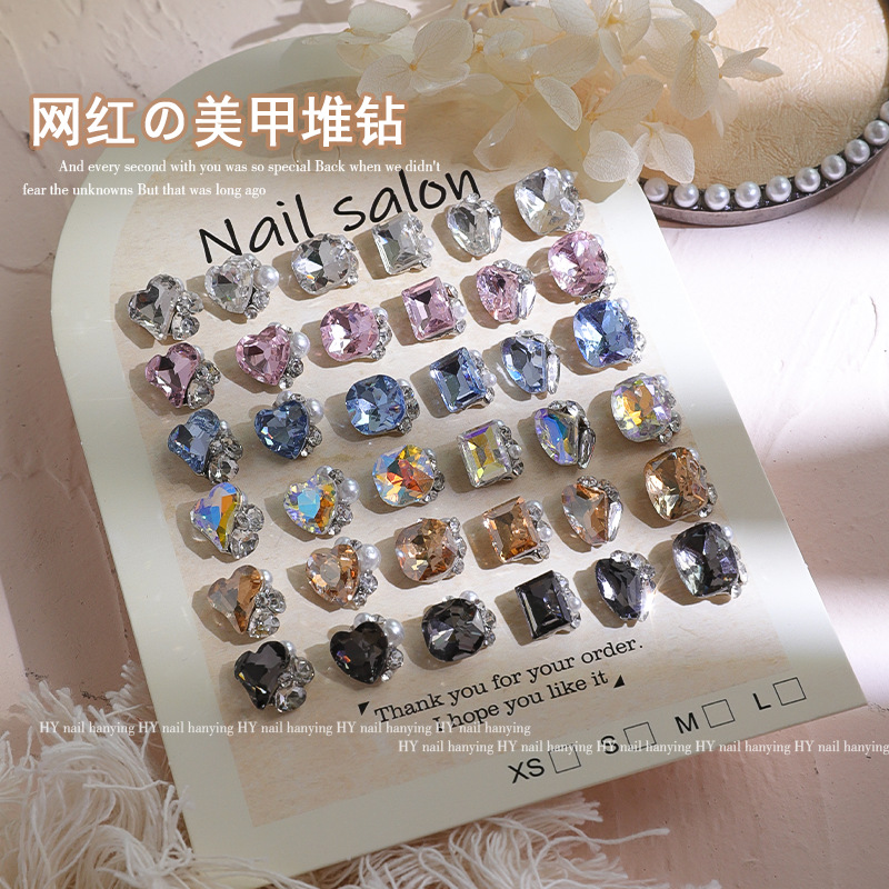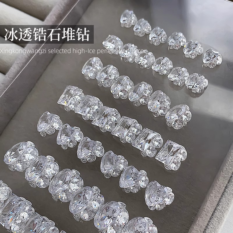 新款美甲雪花网红爆闪菱形锆石美甲饰品珍珠镶钻冰透穿戴甲装饰品