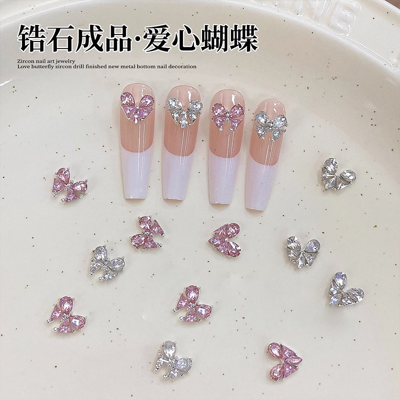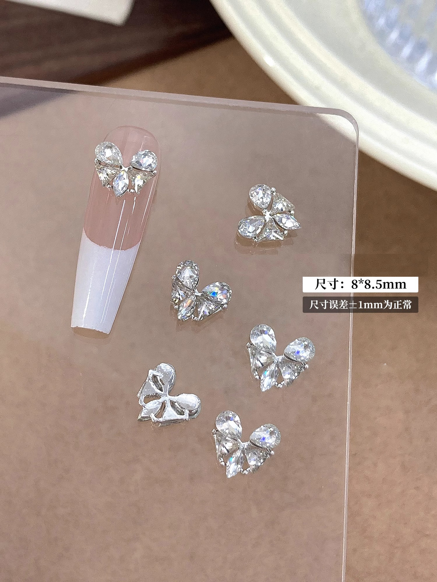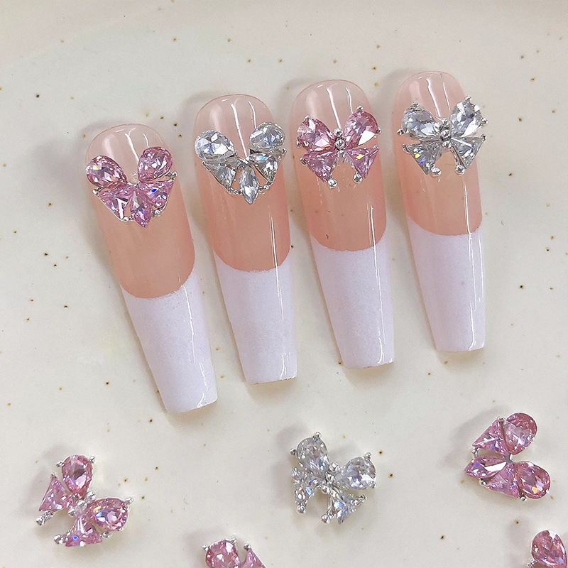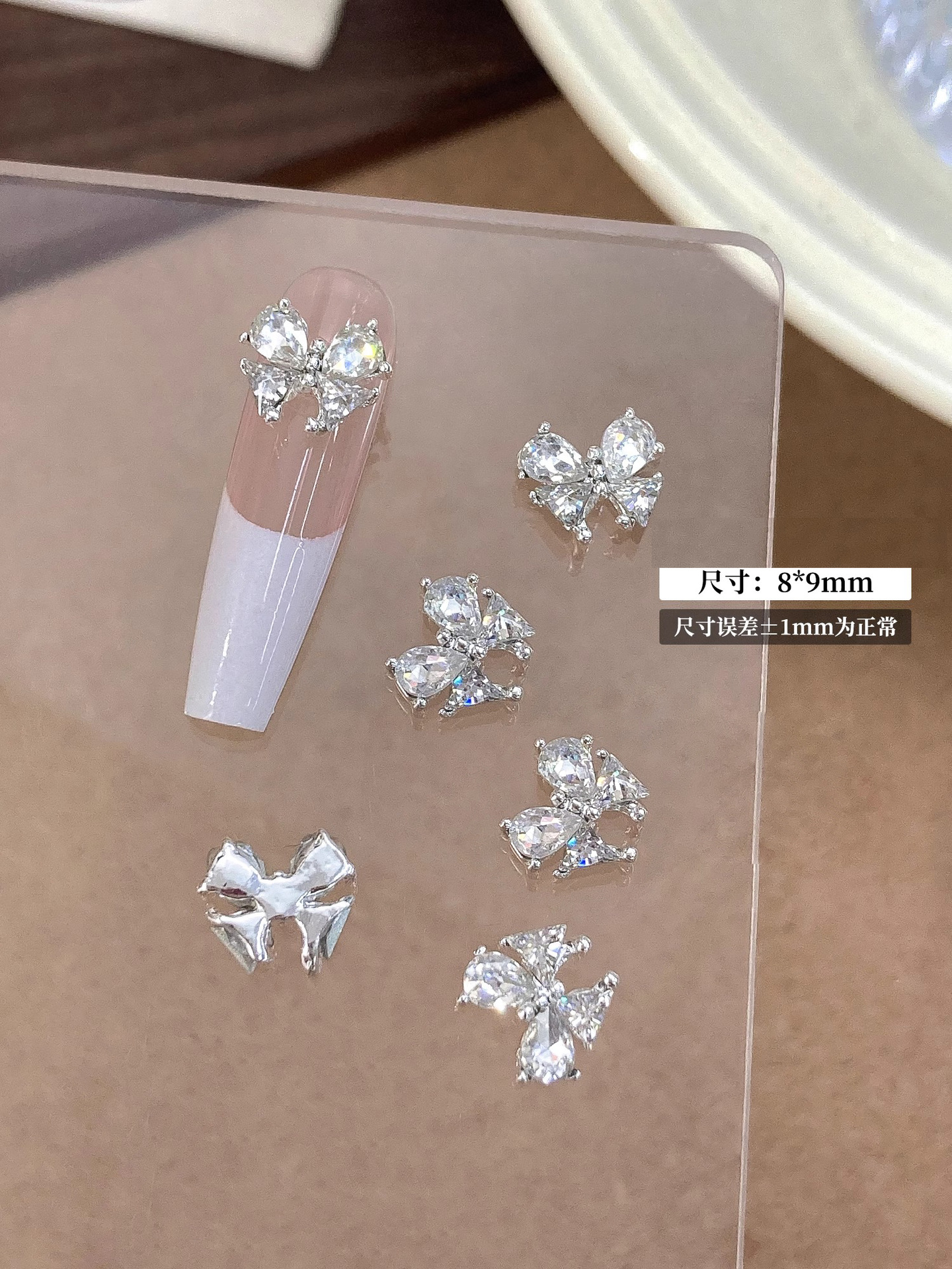 完成品の愛らしいジルコニアネイルアートデコレーション、高品質で人気のキラキラ輝く白いダイヤモンドと蝶結び素材のセット、ネイルアート用ダイヤモンド