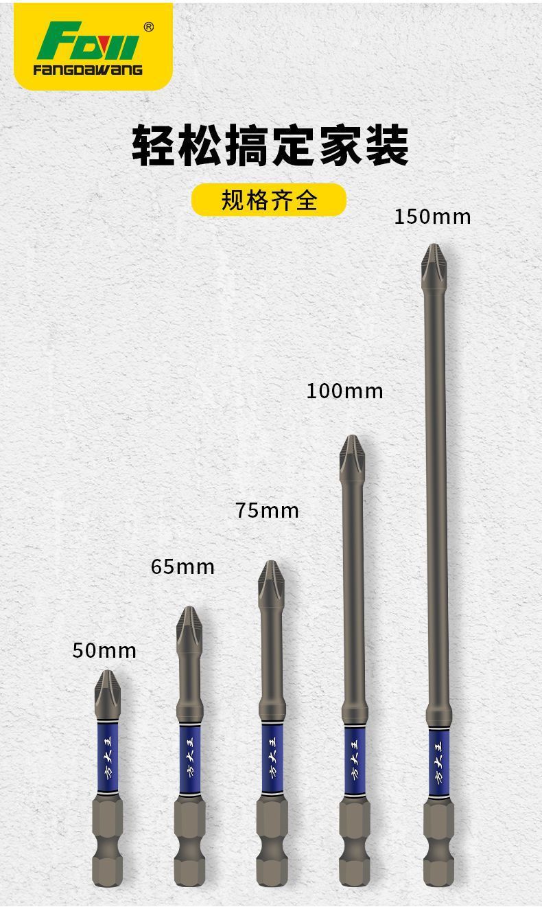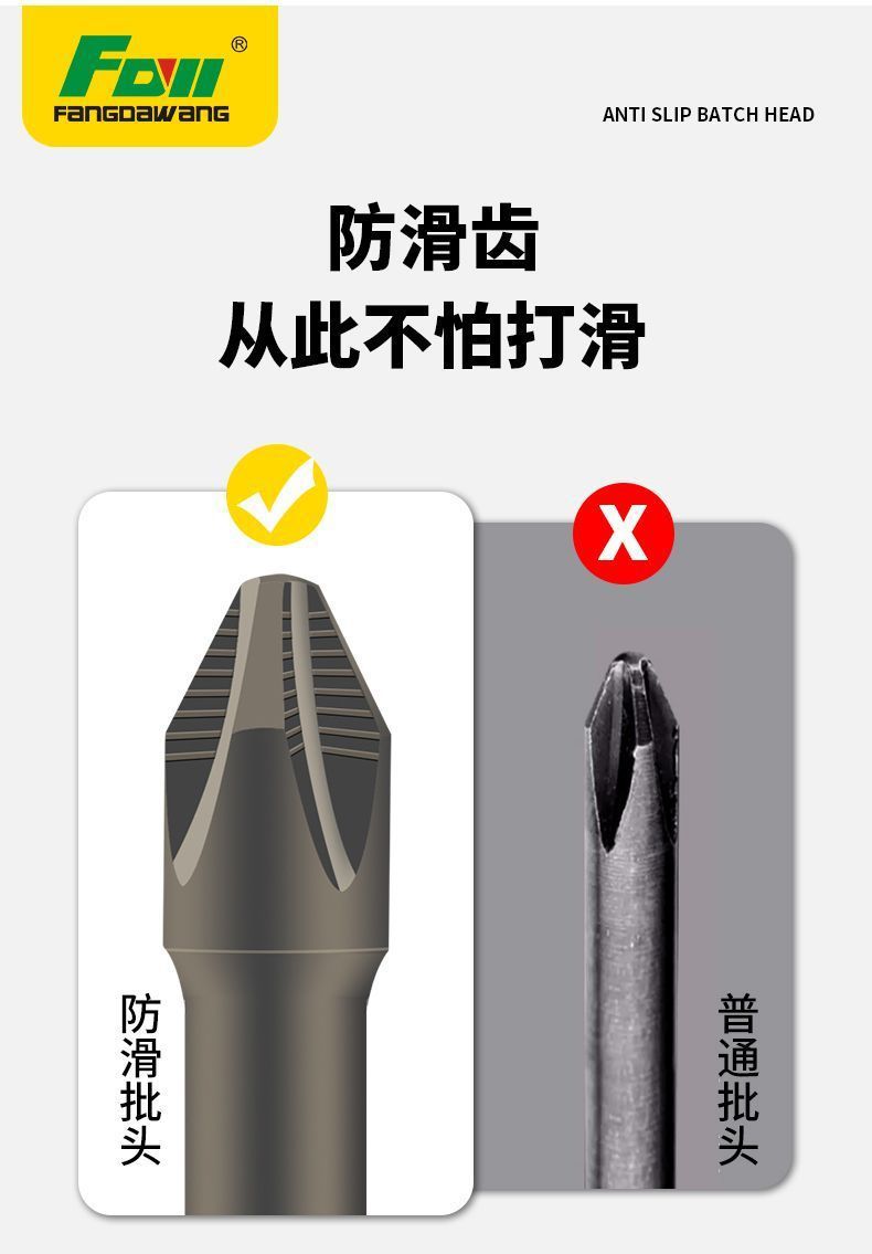 方大王アップグレード滑り止め耐衝撃強磁気クロスヘッド強ねじり電動ドライバー懐中電灯超硬ドライバーヘッド