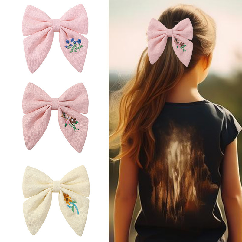 国風布芸綿麻髪クリップ素雅蝶結び花卉刺繍髪飾り手作り少女髪飾りメーカー卸売り
