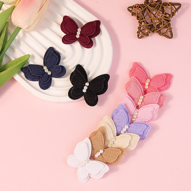 夏季新款布艺小珍珠蝴蝶儿童发饰服饰鞋袜包包手机壳衣服辅料批发