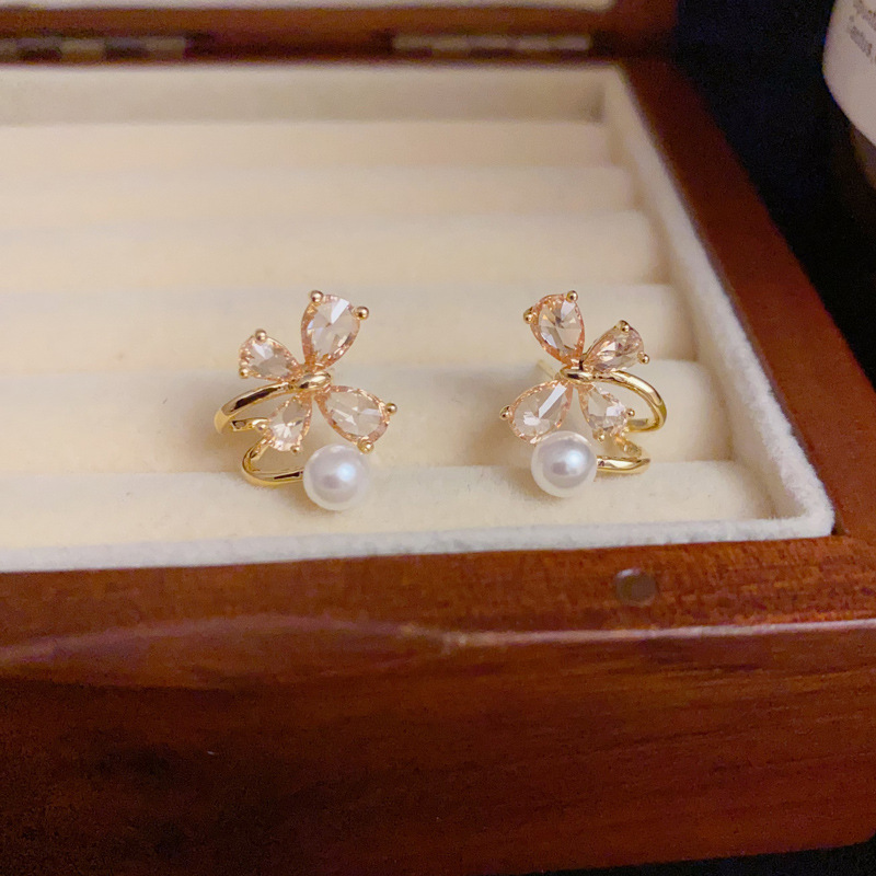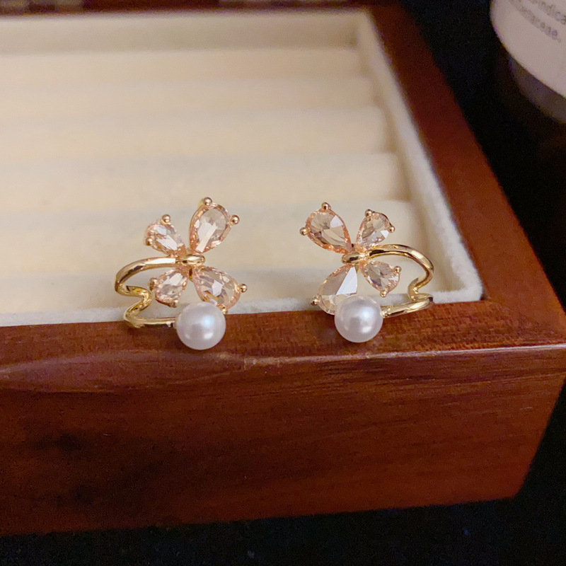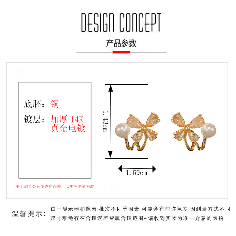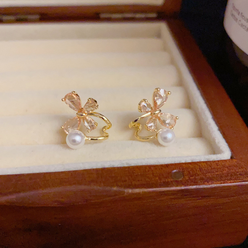 大衆気質ファッションシンプルなデザイン感シャンパン色蝶真珠ピアス洗練された軽贅沢イヤリング卸売り