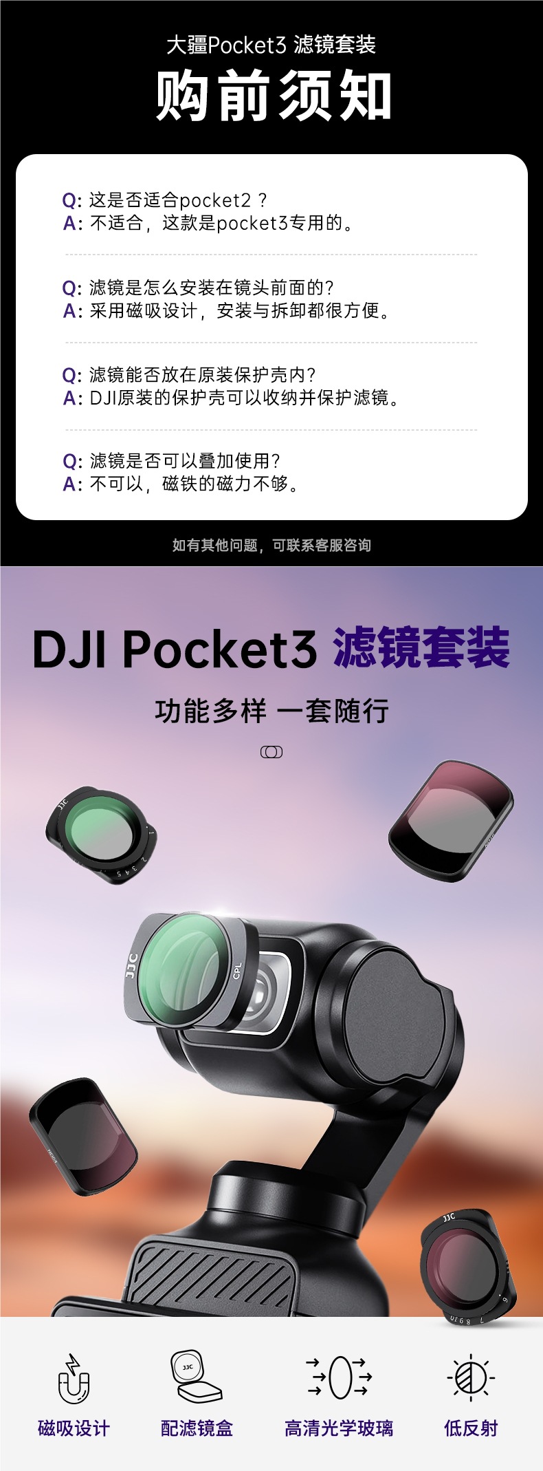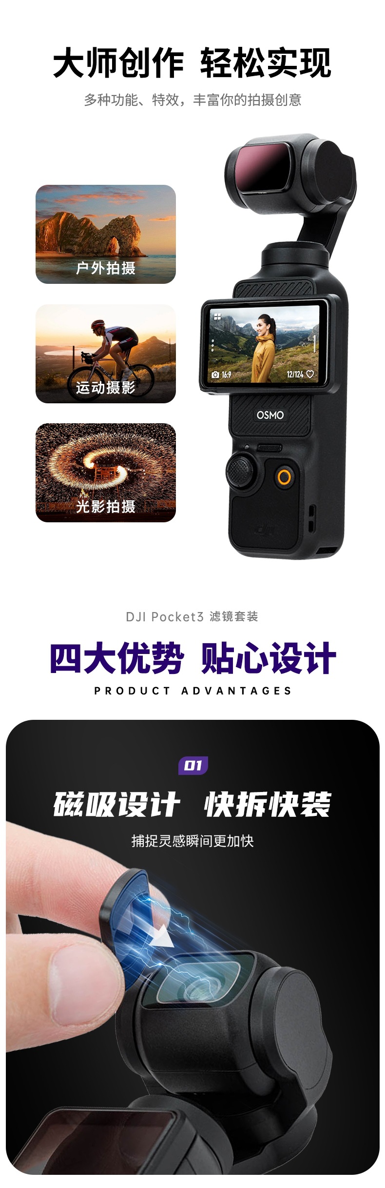 相机cpl偏振镜适用大疆pocket3滤镜套装nd减光镜action5pro滤镜