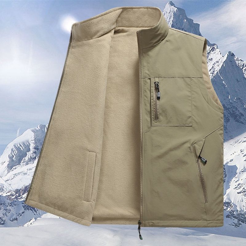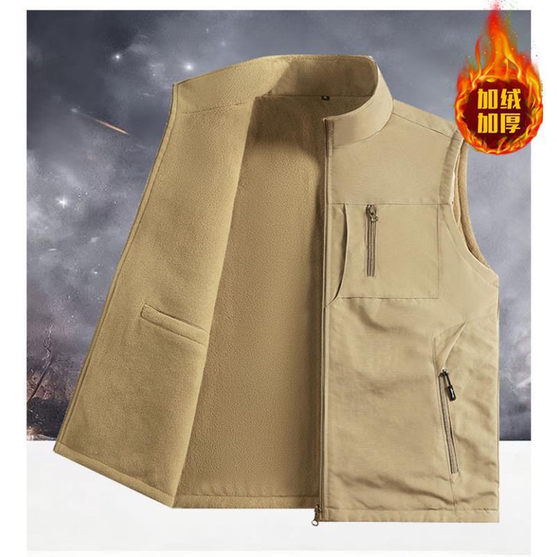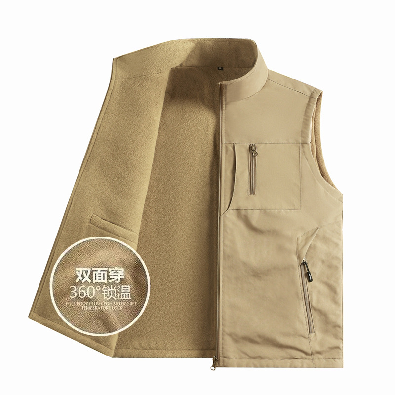 秋冬新款双面穿加绒马甲户外宽松钓鱼背心立领外套男士马夹
