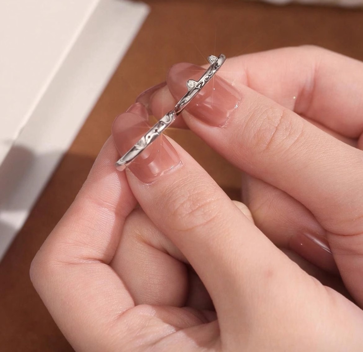 S925 スターリングシルバーのラブリング、シンプルでファッショナブル、多用途、ニッチなデザイン、ガールフレンドへのハイエンドのカップルリング