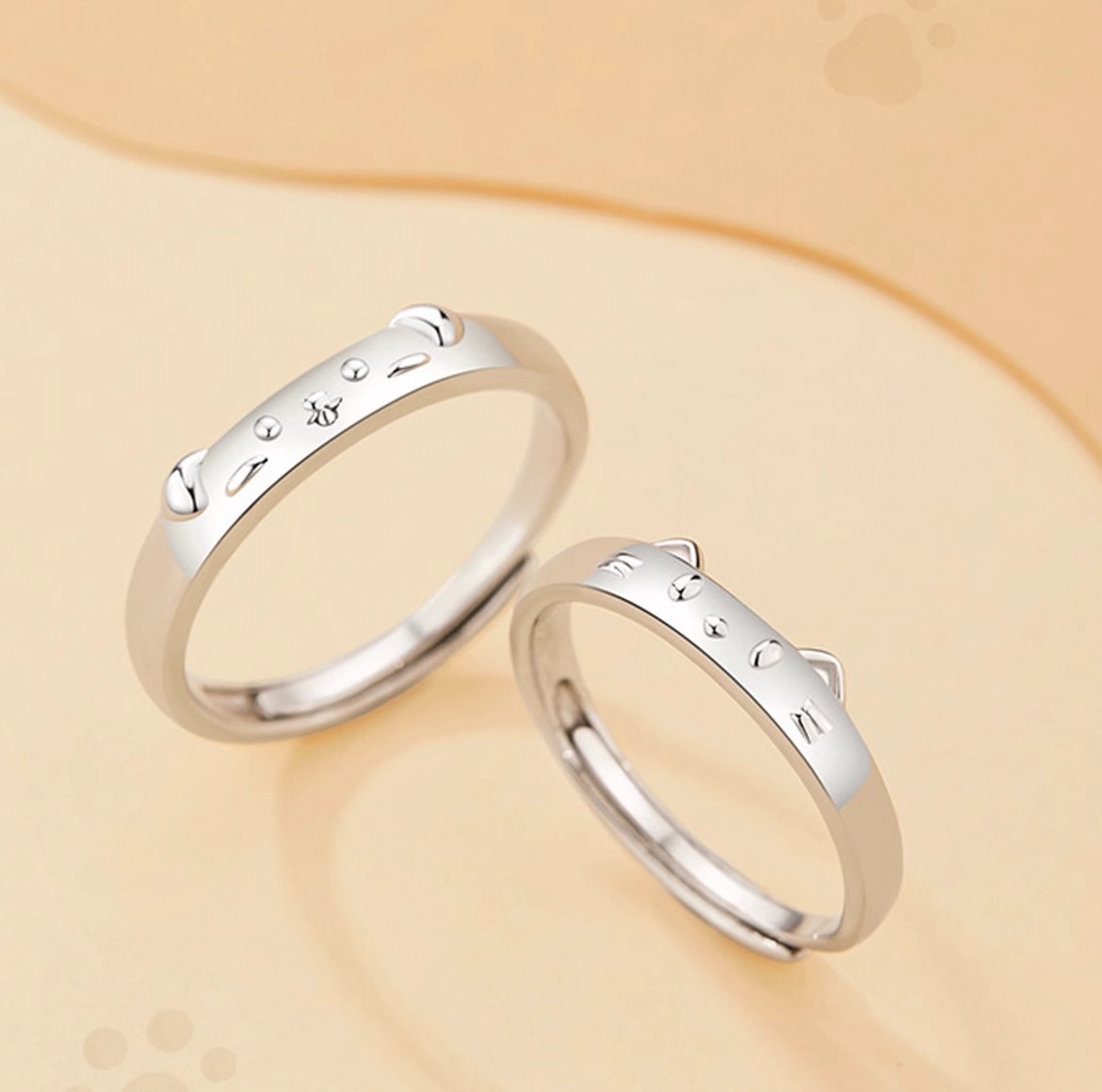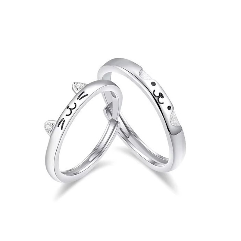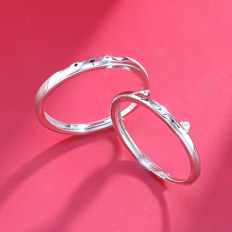 S999足银可爱猫狗情侣戒指一对时尚简约百搭可爱卡通开口指环批发