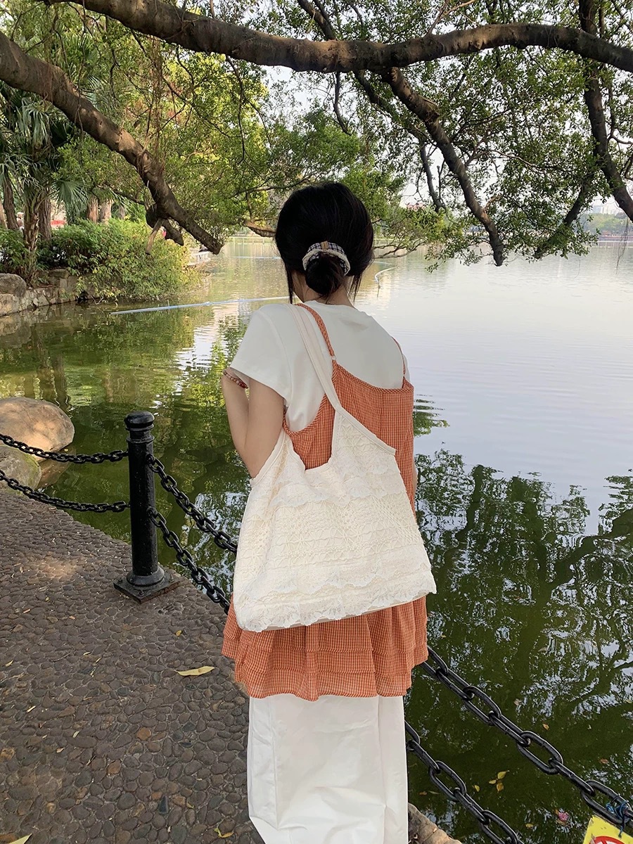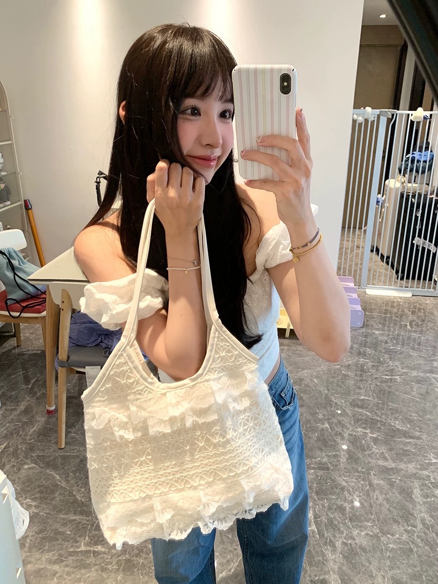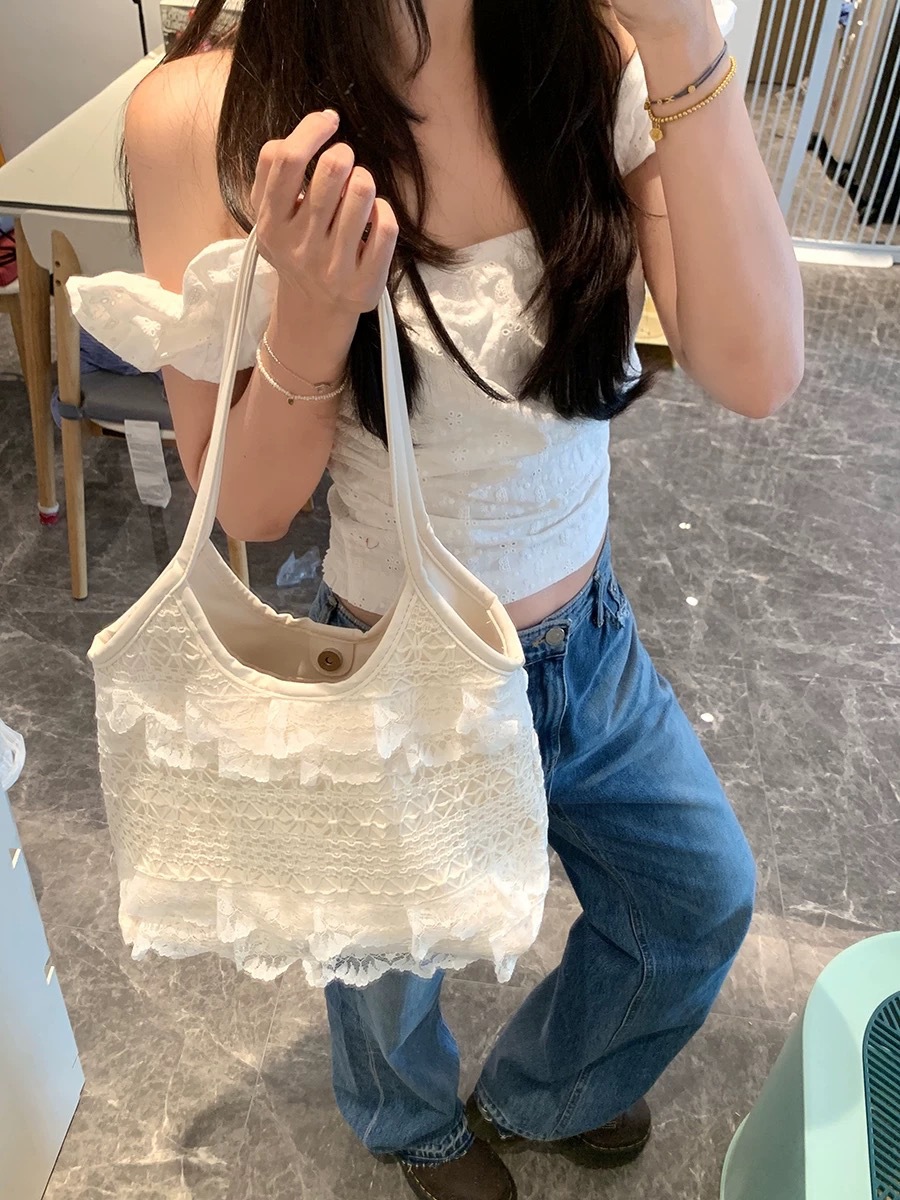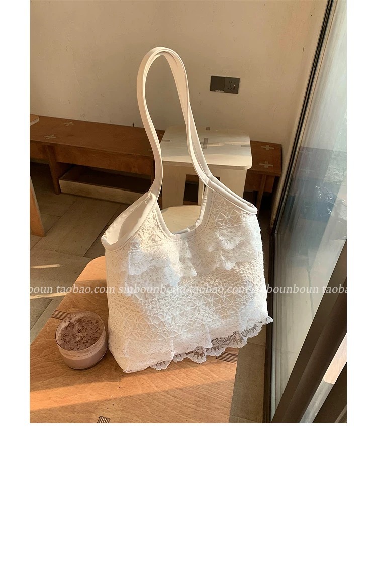 2025 夏カジュアル休暇妖精レースメッシュトートバッグ脇の下ショルダーバッグ大