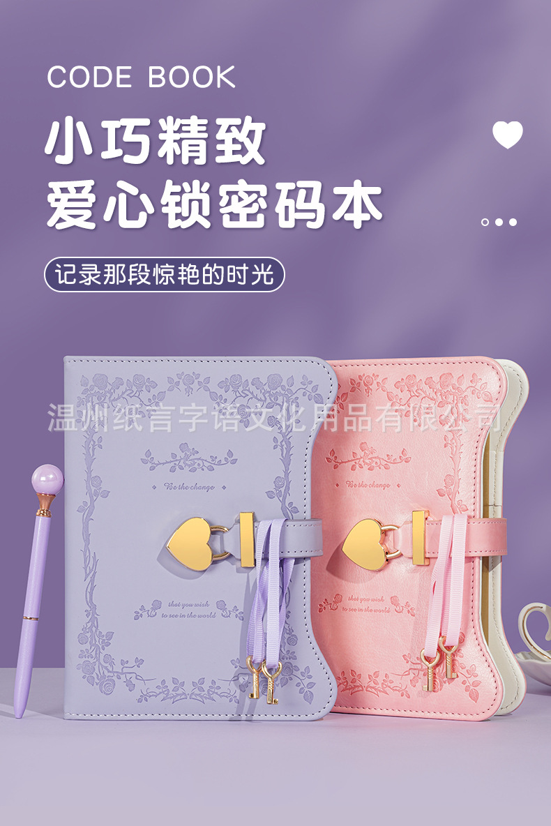 B6レトロ帯愛ロック創意暗証番号日記帳学生筆記ノート日韓厚手少女手帳