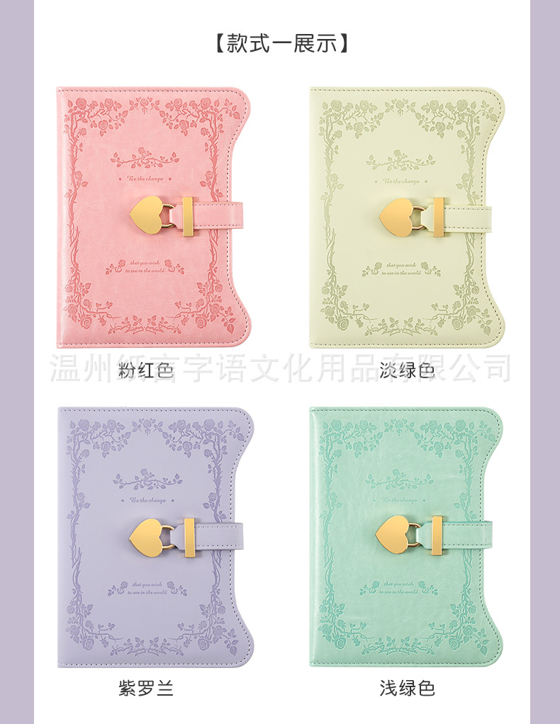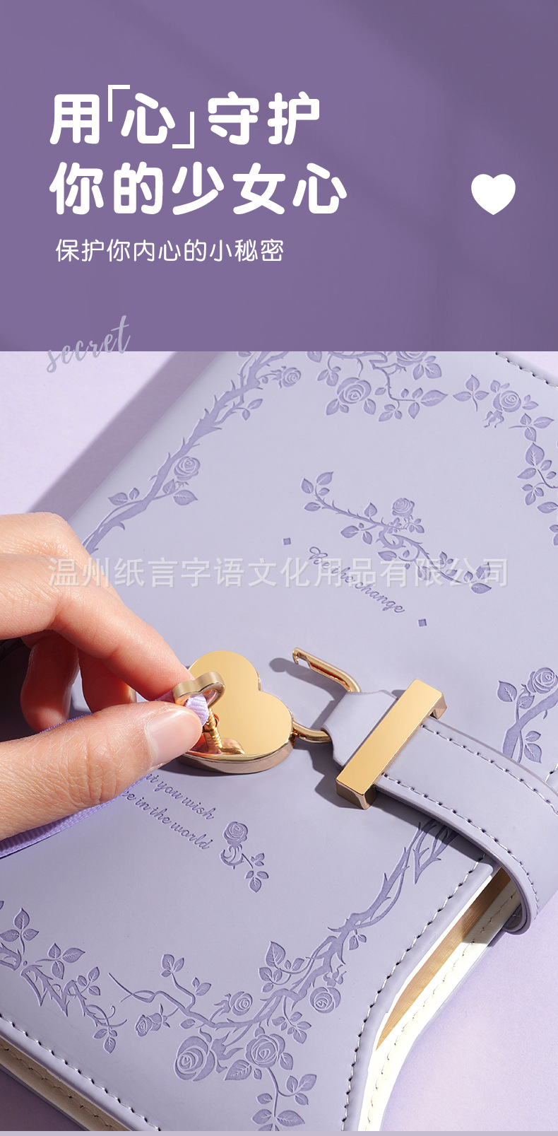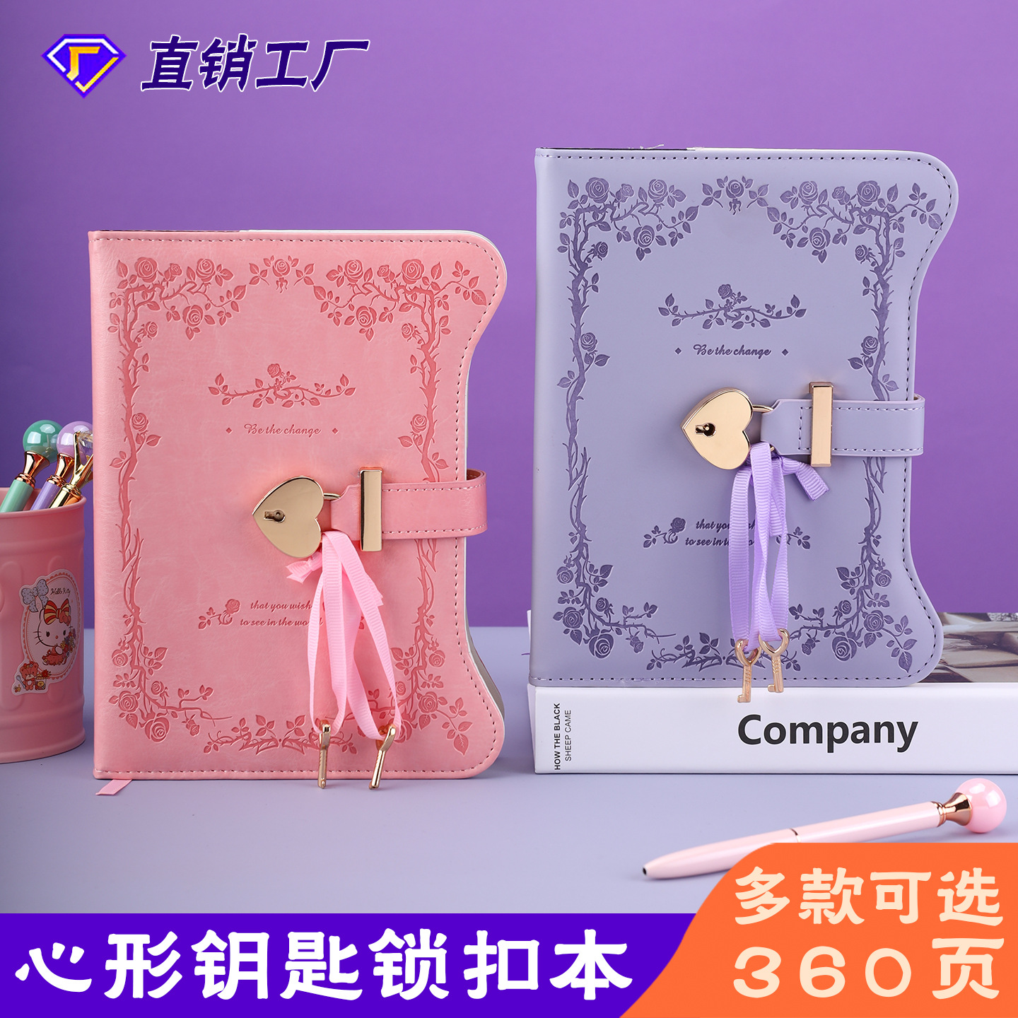 A5ロック付きノート厚手メモ帳クリエイティブハート型キーロックかわいい少女愛ロック日記