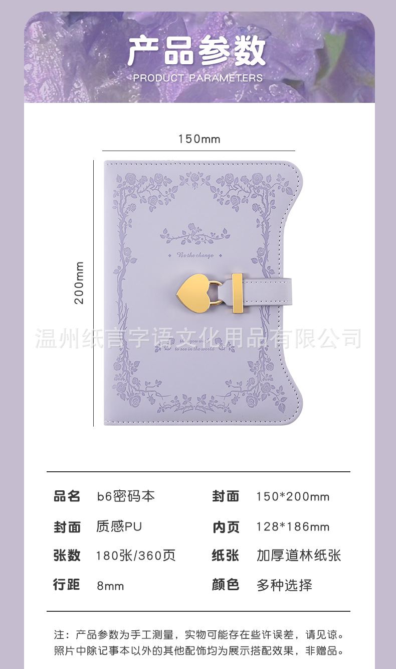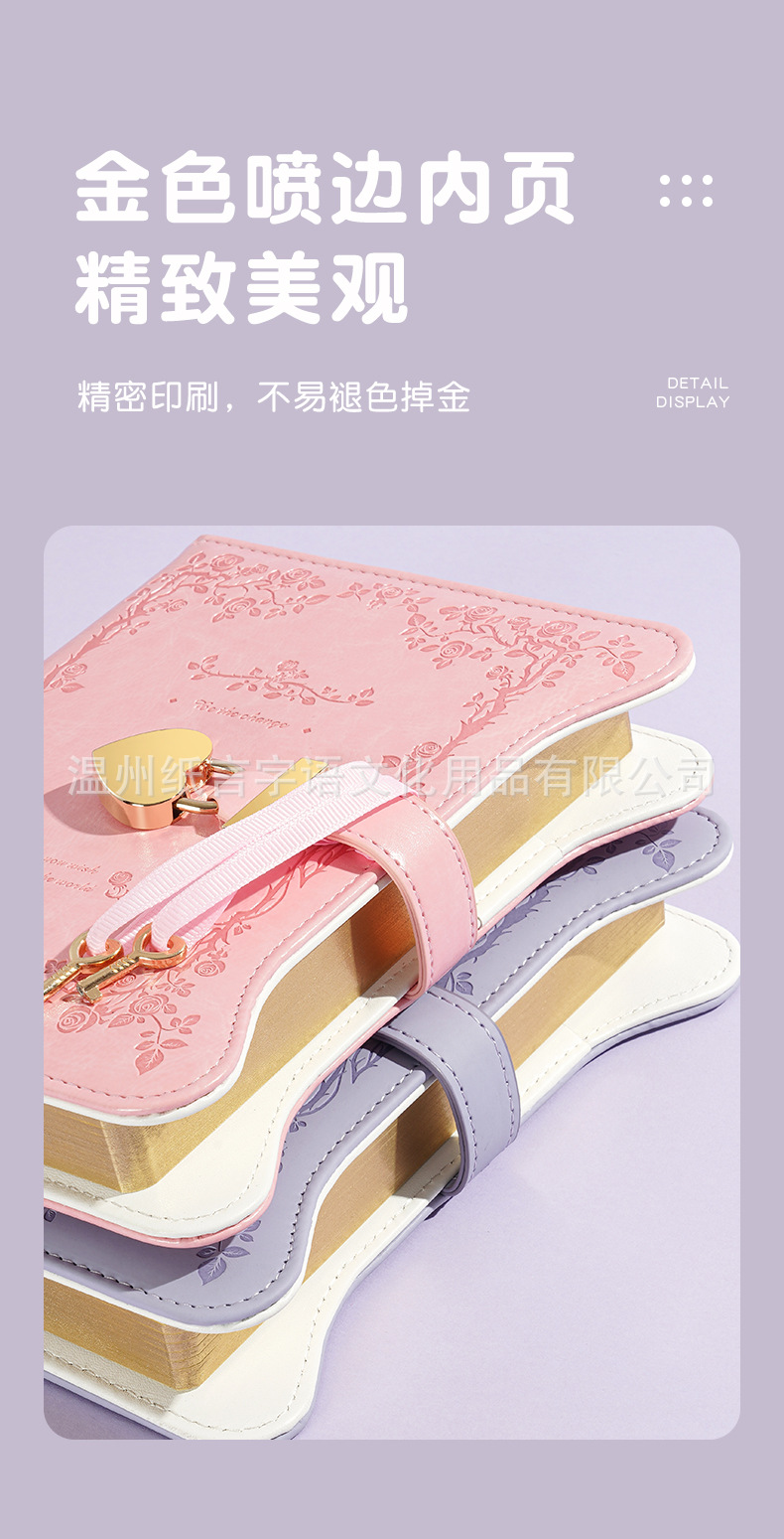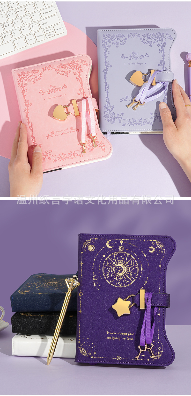 A5ロック付きノート厚手メモ帳クリエイティブハート型キーロックかわいい少女愛ロック日記