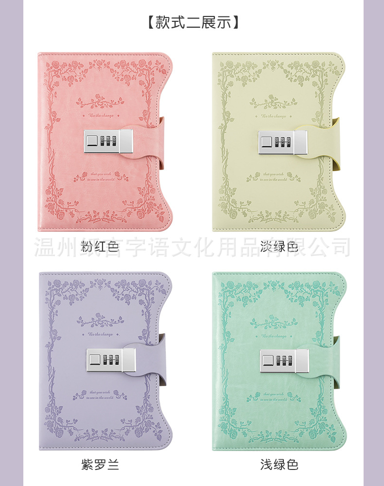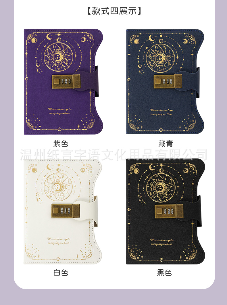 カバーの色 ピンクの愛のロック,紫の愛のロック,ライトグリーンのラブロック,ライトグリーンのラブロック,ピンクのコードブック,紫のコードブック,薄緑色のコードブック,薄緑色のコードブック,ブルースターロック,ブラックスターロック,紫のスターロック,ホワイトスターロック,青いコードブック,黒のコードブック,紫色のダイヤル錠,白いコードブック