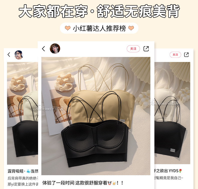 新品爆款美背背心薄款内衣少女小胸抹胸文胸吊带内搭无痕免穿胸罩