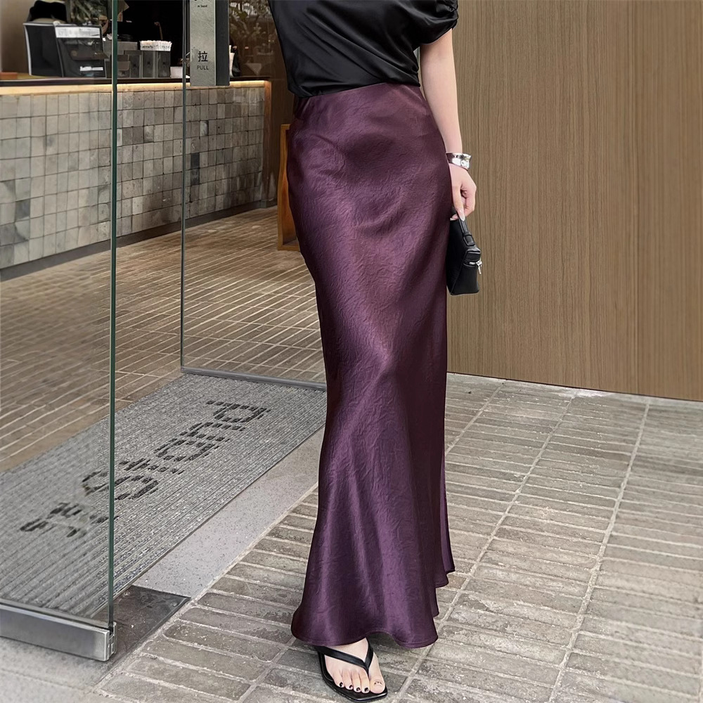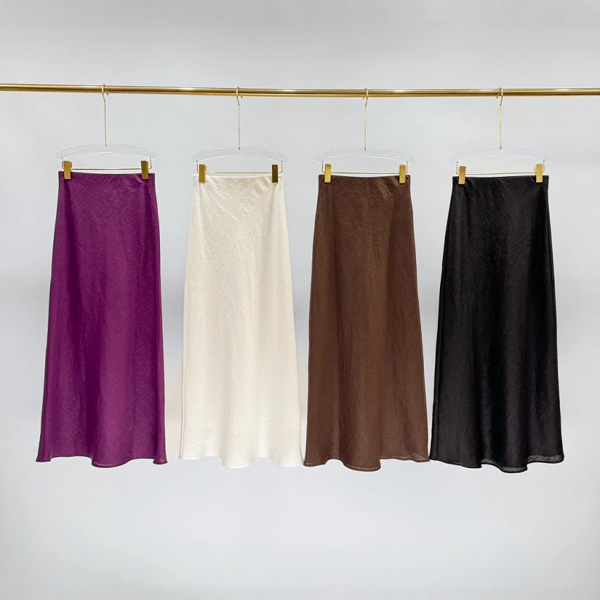 9色の背の高い超ロングタイプの酢酸スカートの女性は腰が高くて痩せています。
