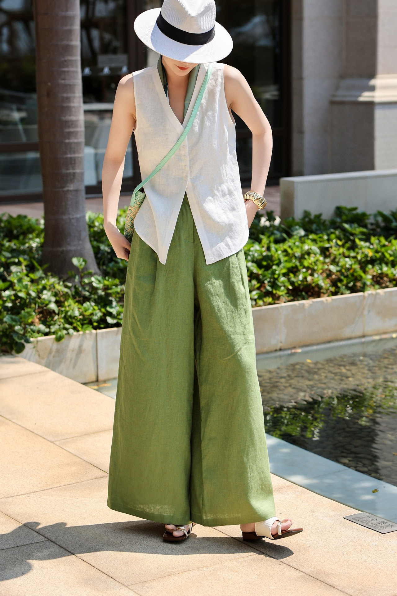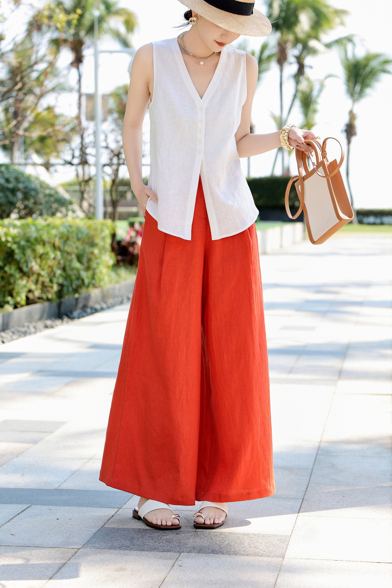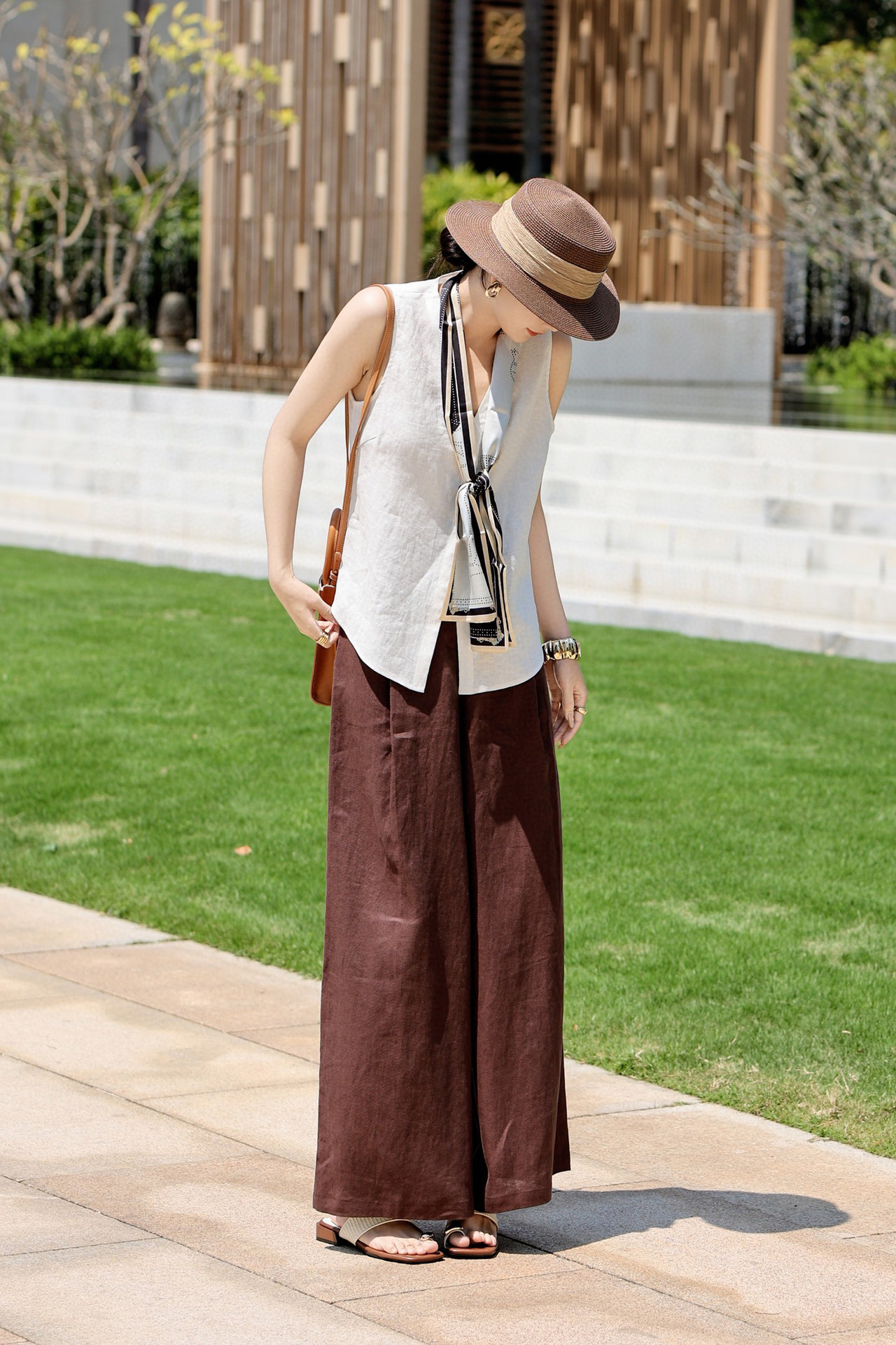 老銭風軽豪華高級2025夏の新型亜麻百合気質高腰で痩せているワイドパンツのストレートパンツ