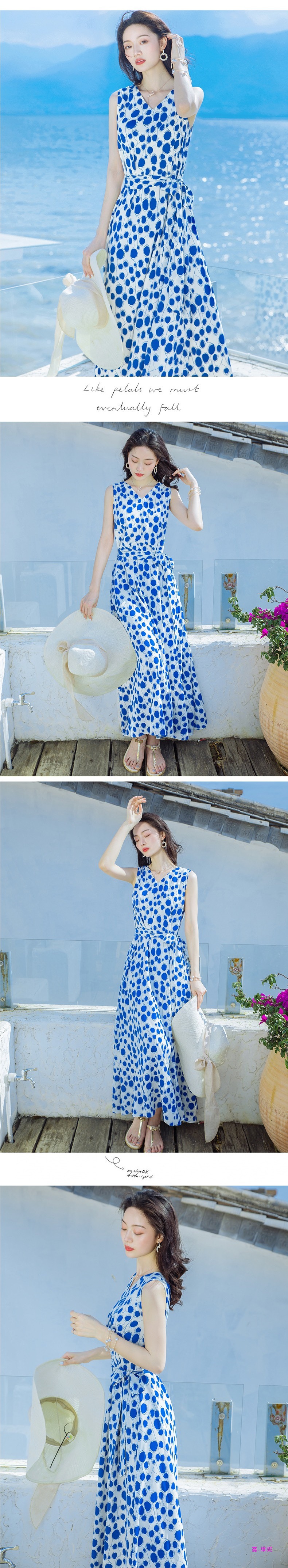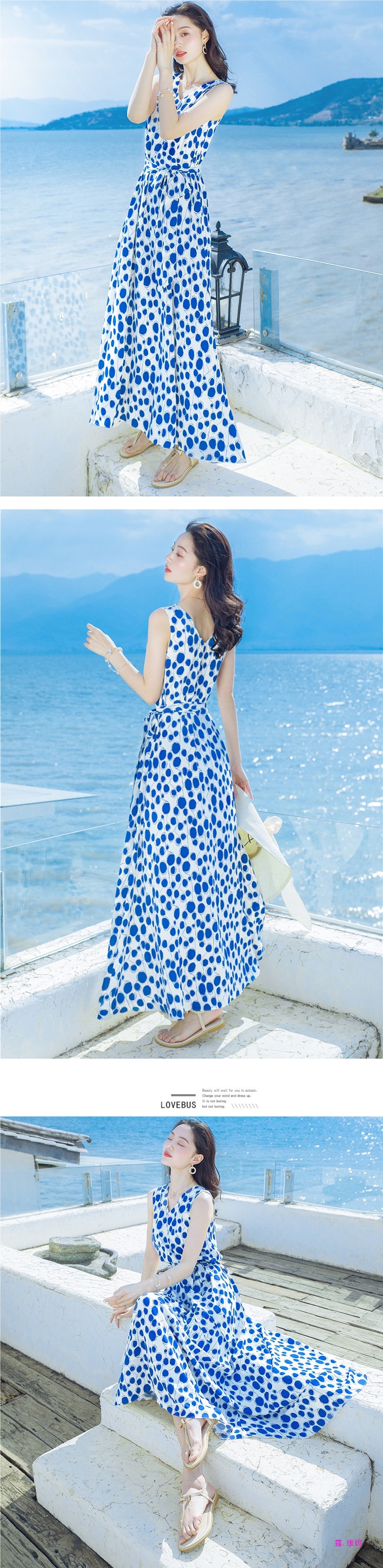夏のシフォンのロングスカートのボヘミアンのワンピースの女性の長いタイプのアンドロメダの超仙の甘いビーチのスカートの海辺の休暇