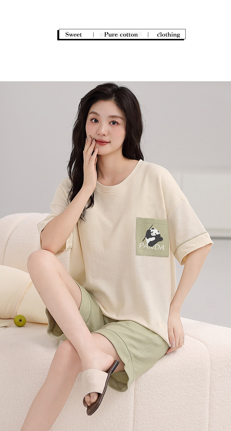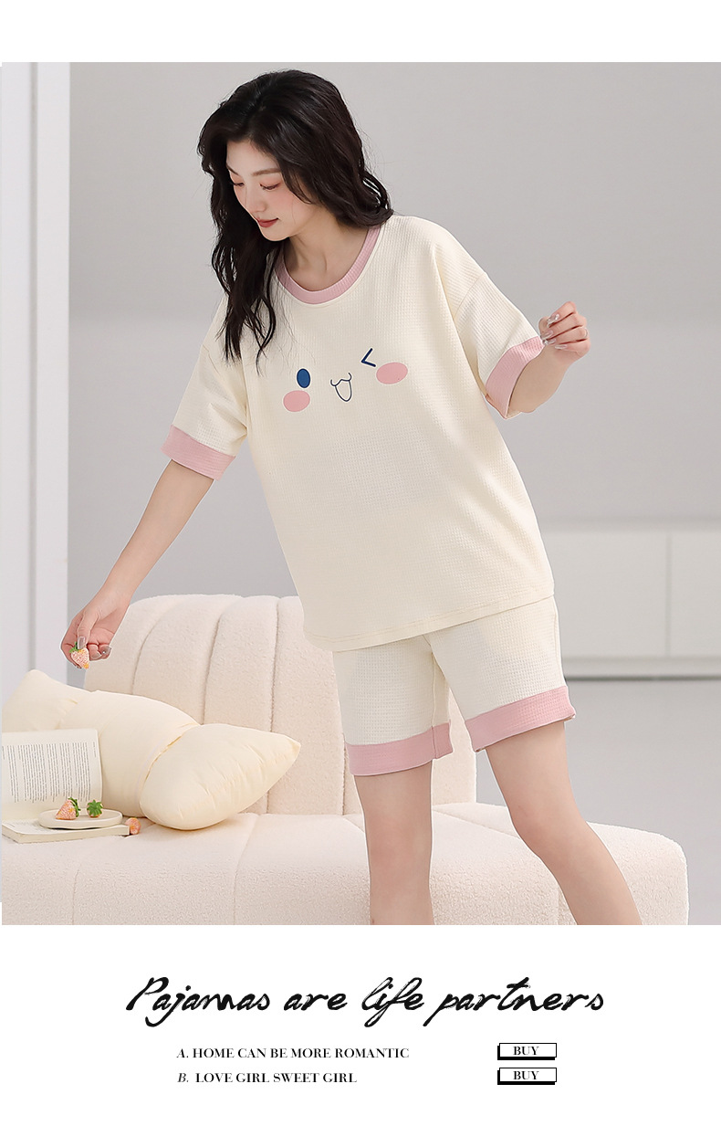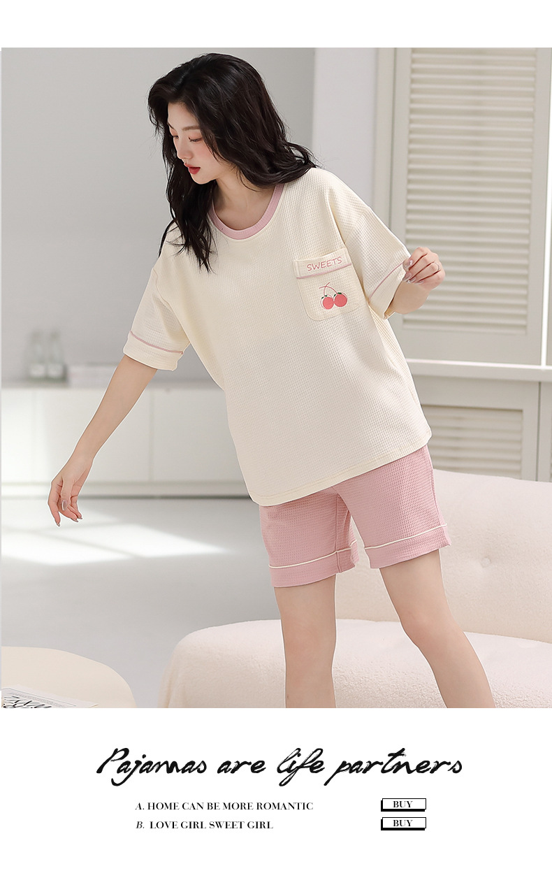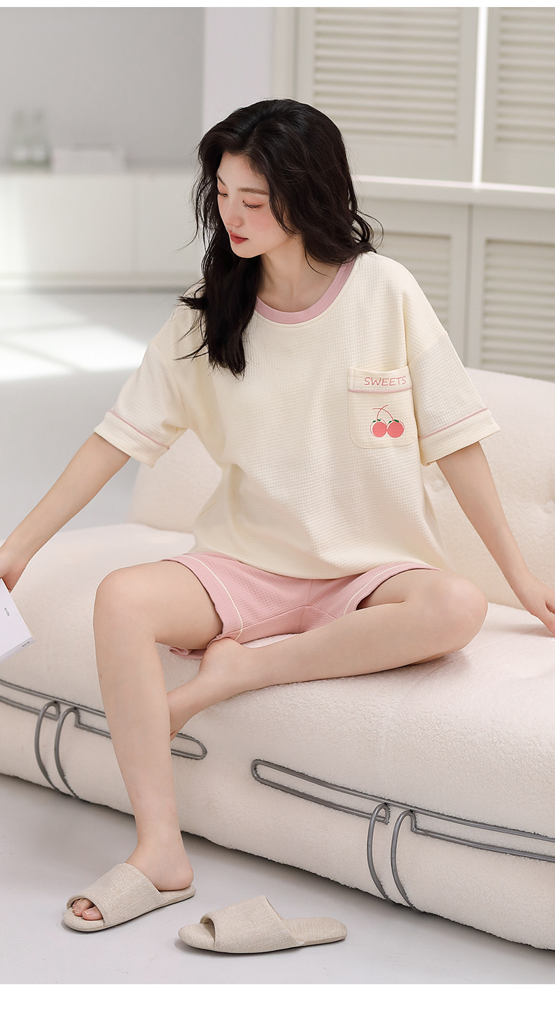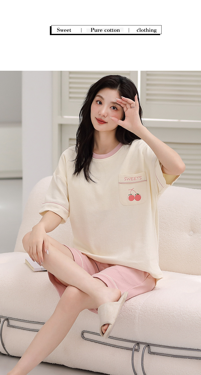 パジャマ女性の夏の純綿ワッフル半袖半ズボンは胸パッドの薄いサイズがあります。