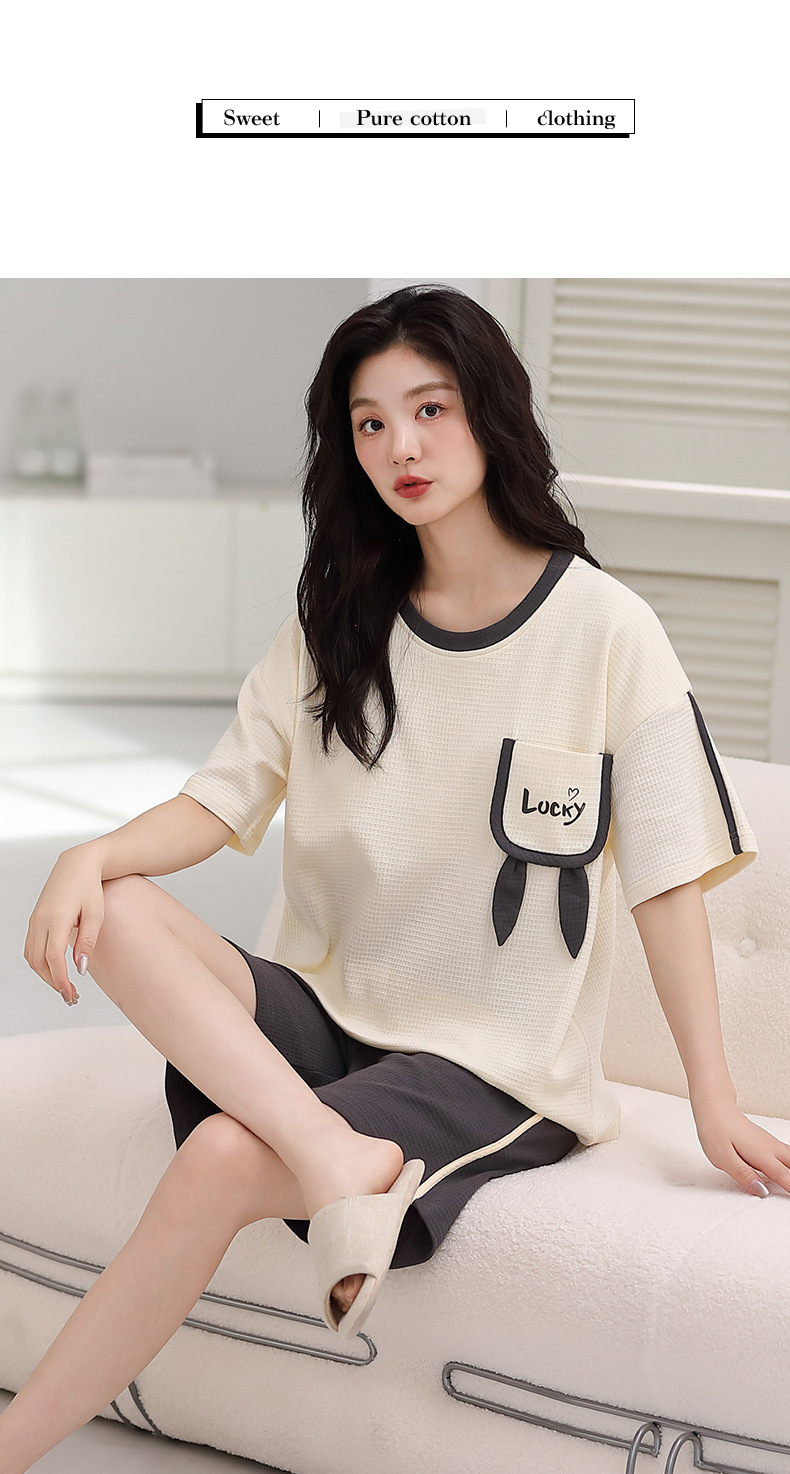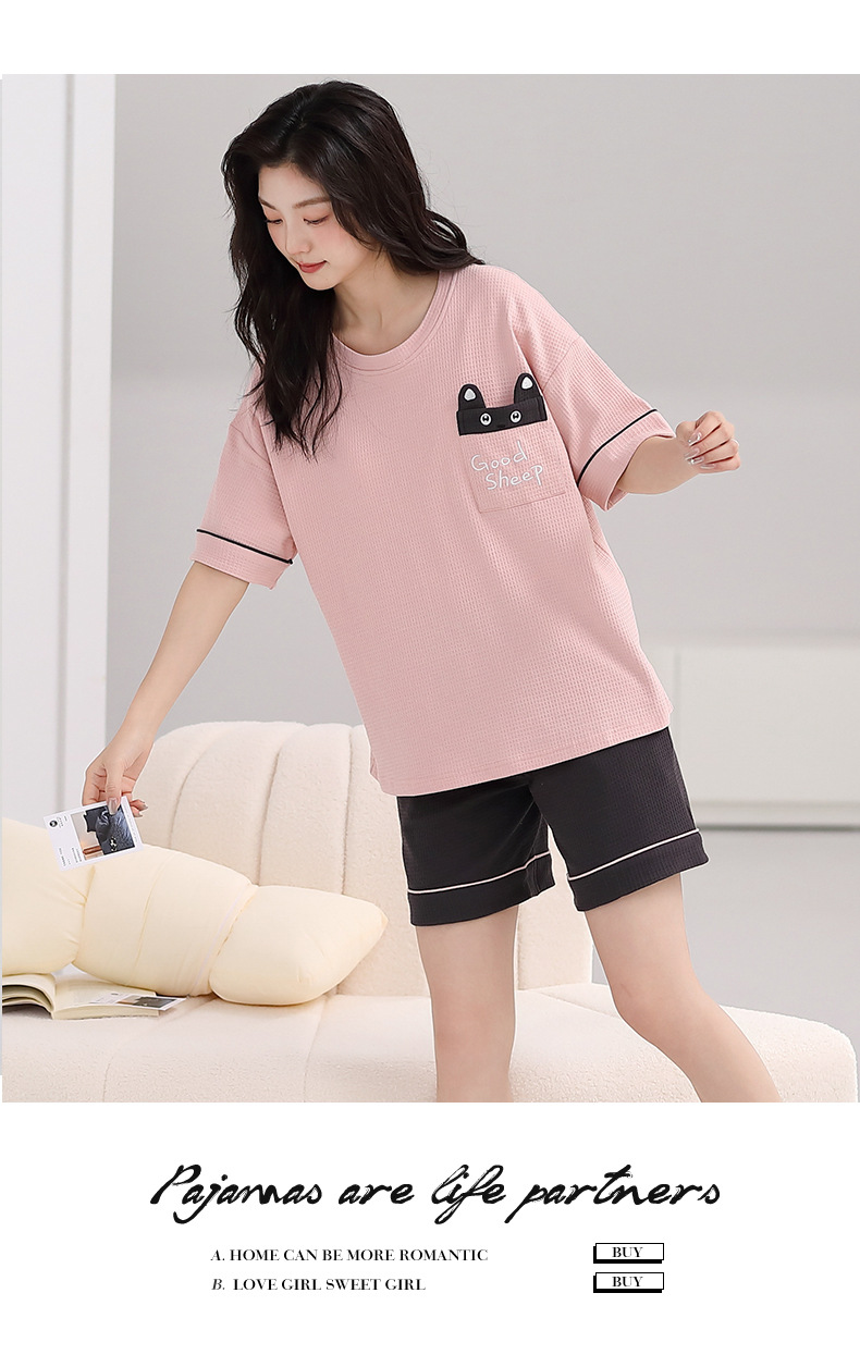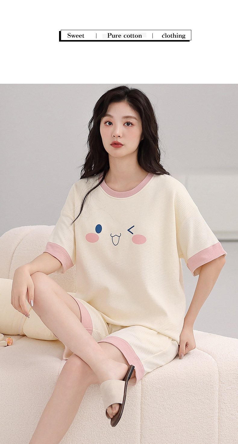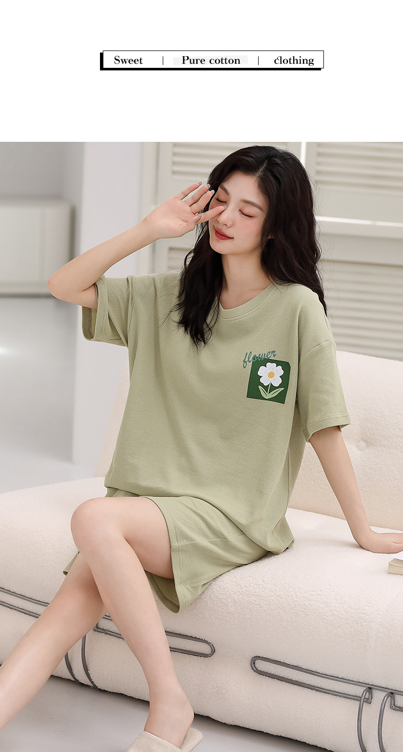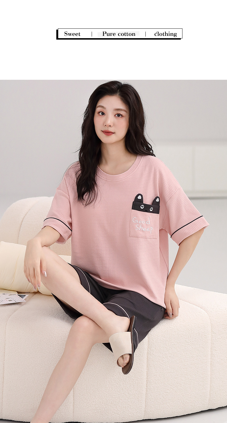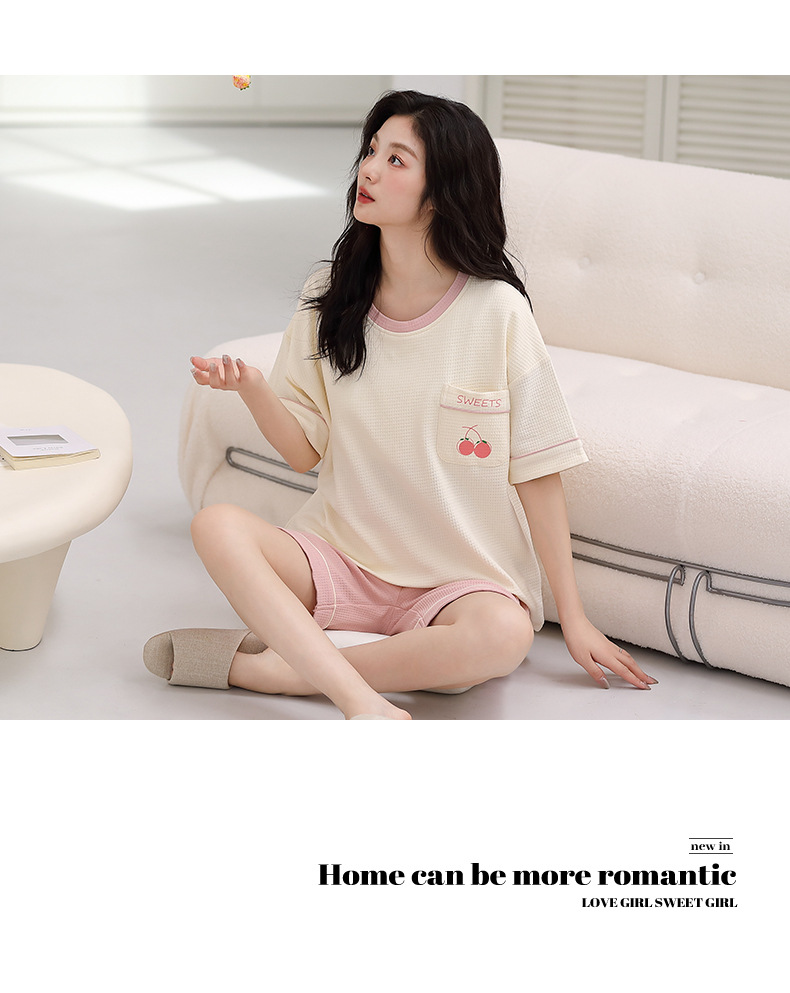 パジャマ女性の夏の純綿ワッフル半袖半ズボンは胸パッドの薄いサイズがあります。