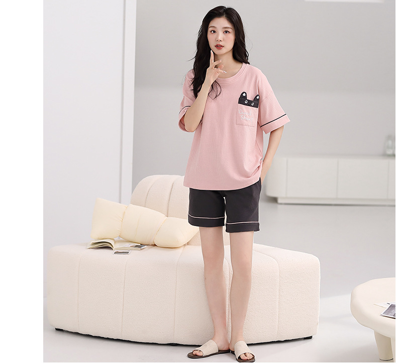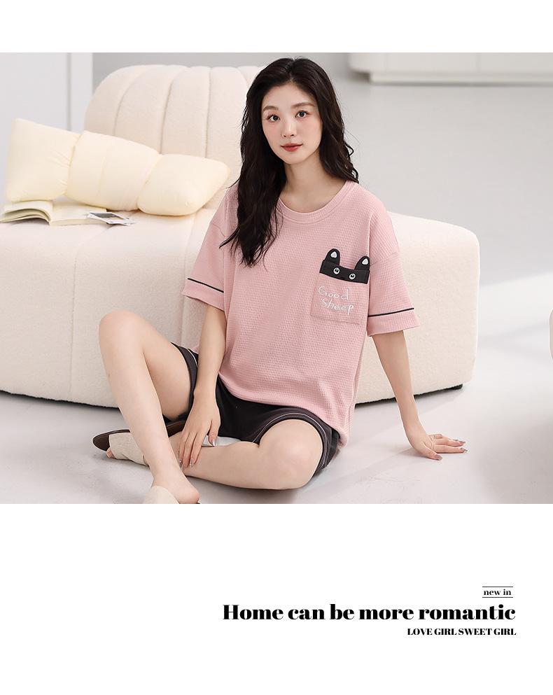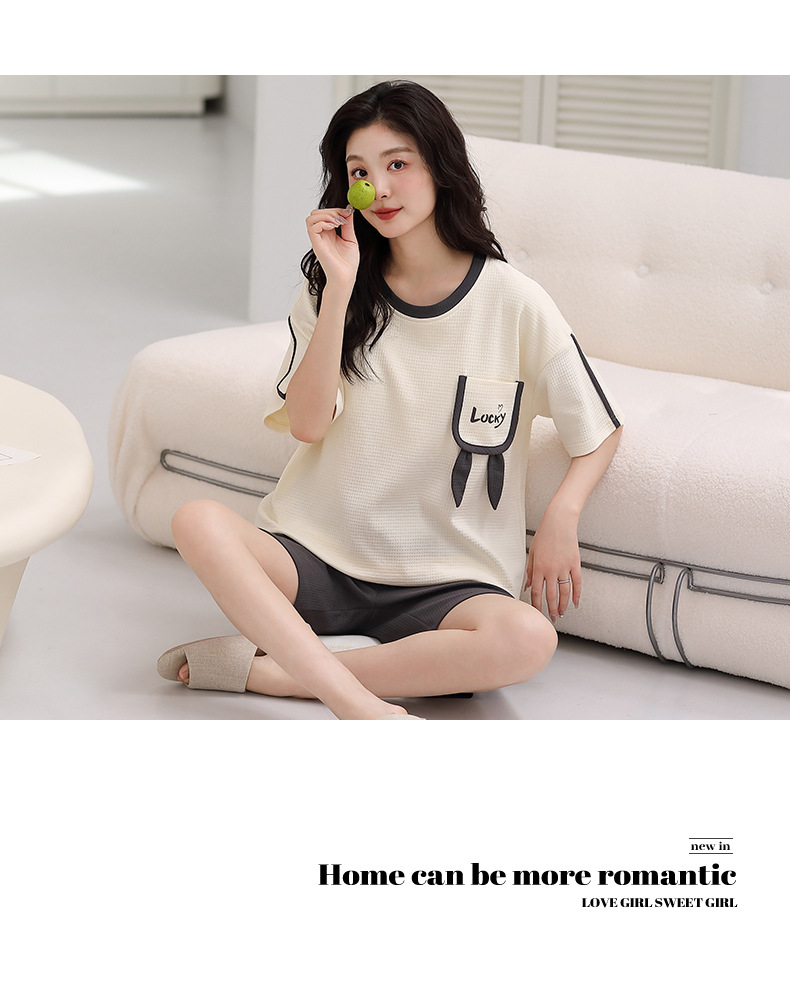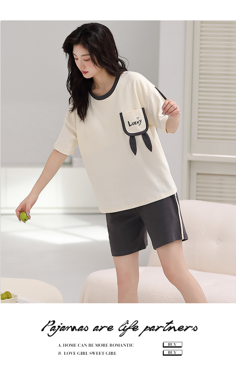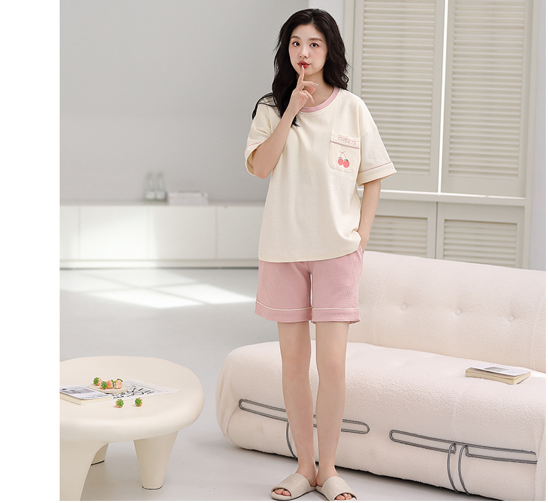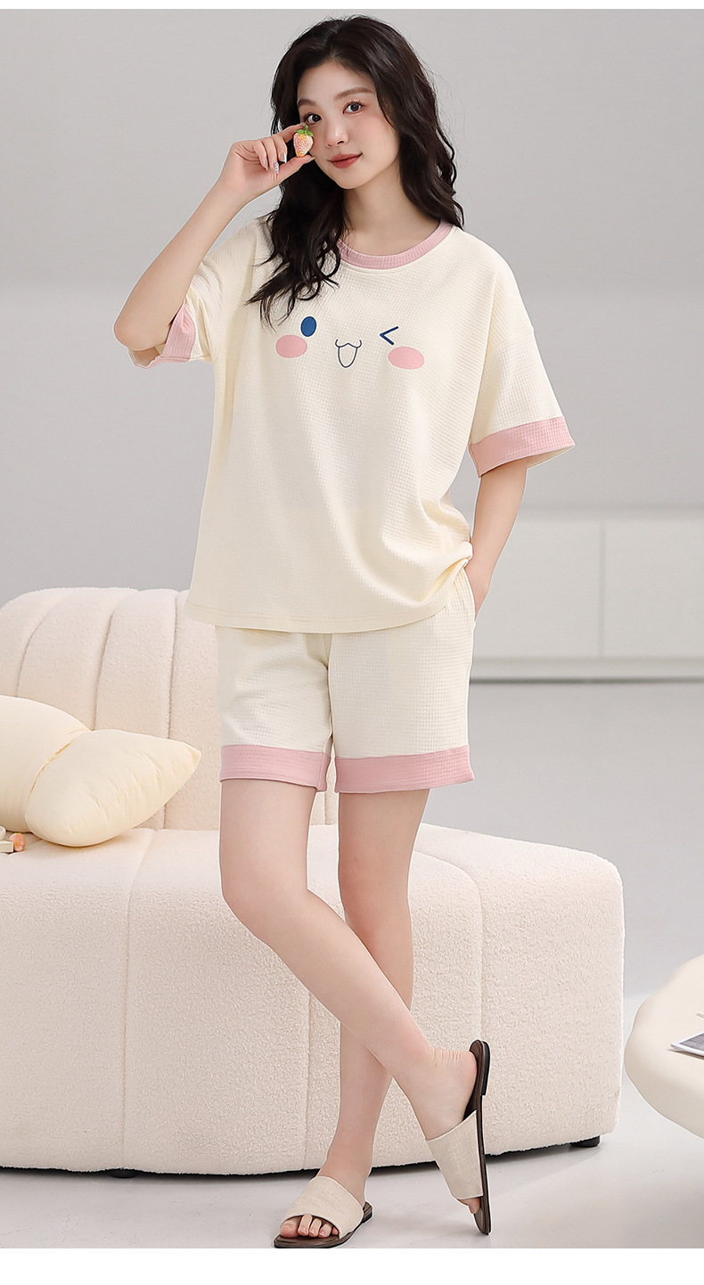 パジャマ女性の夏の純綿ワッフル半袖半ズボンは胸パッドの薄いサイズがあります。