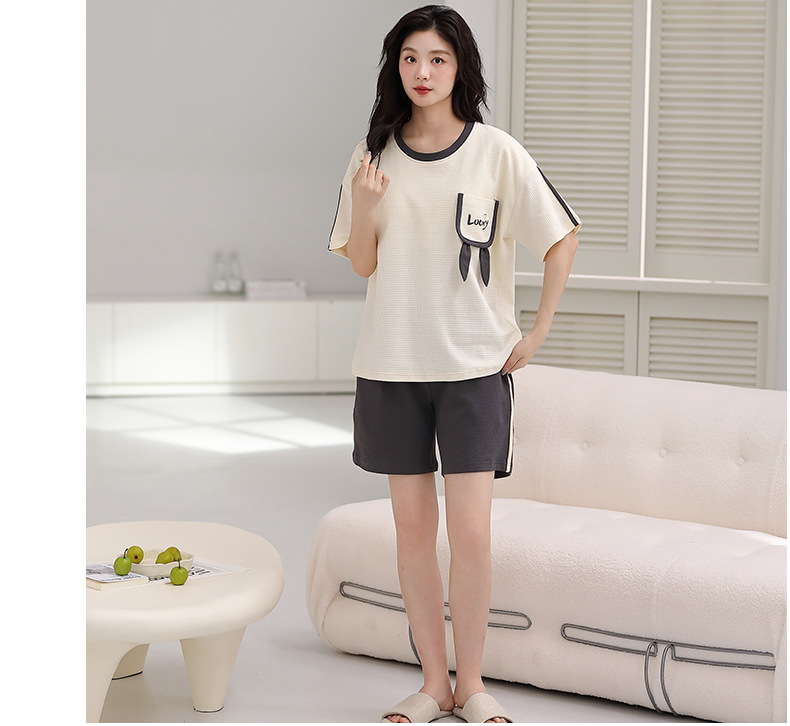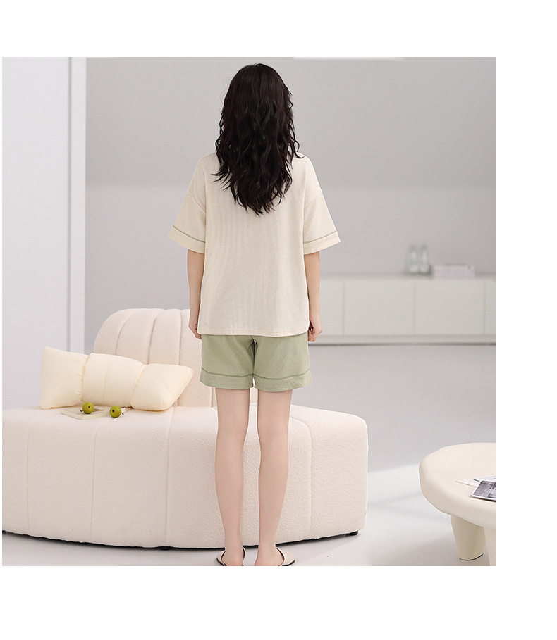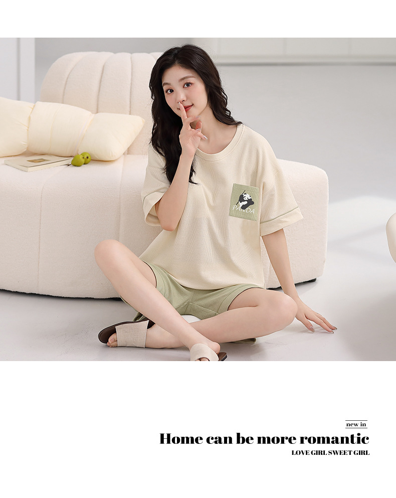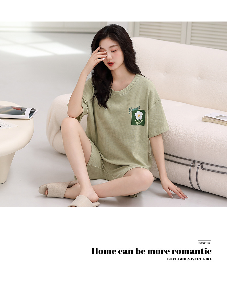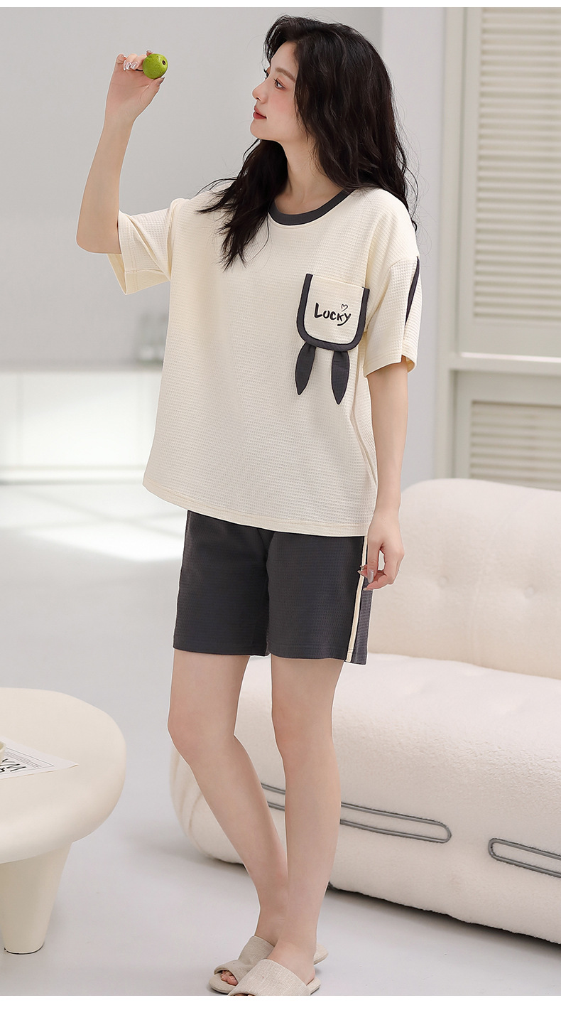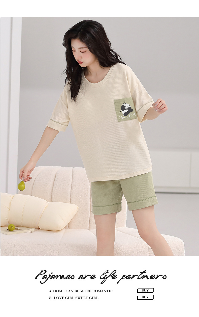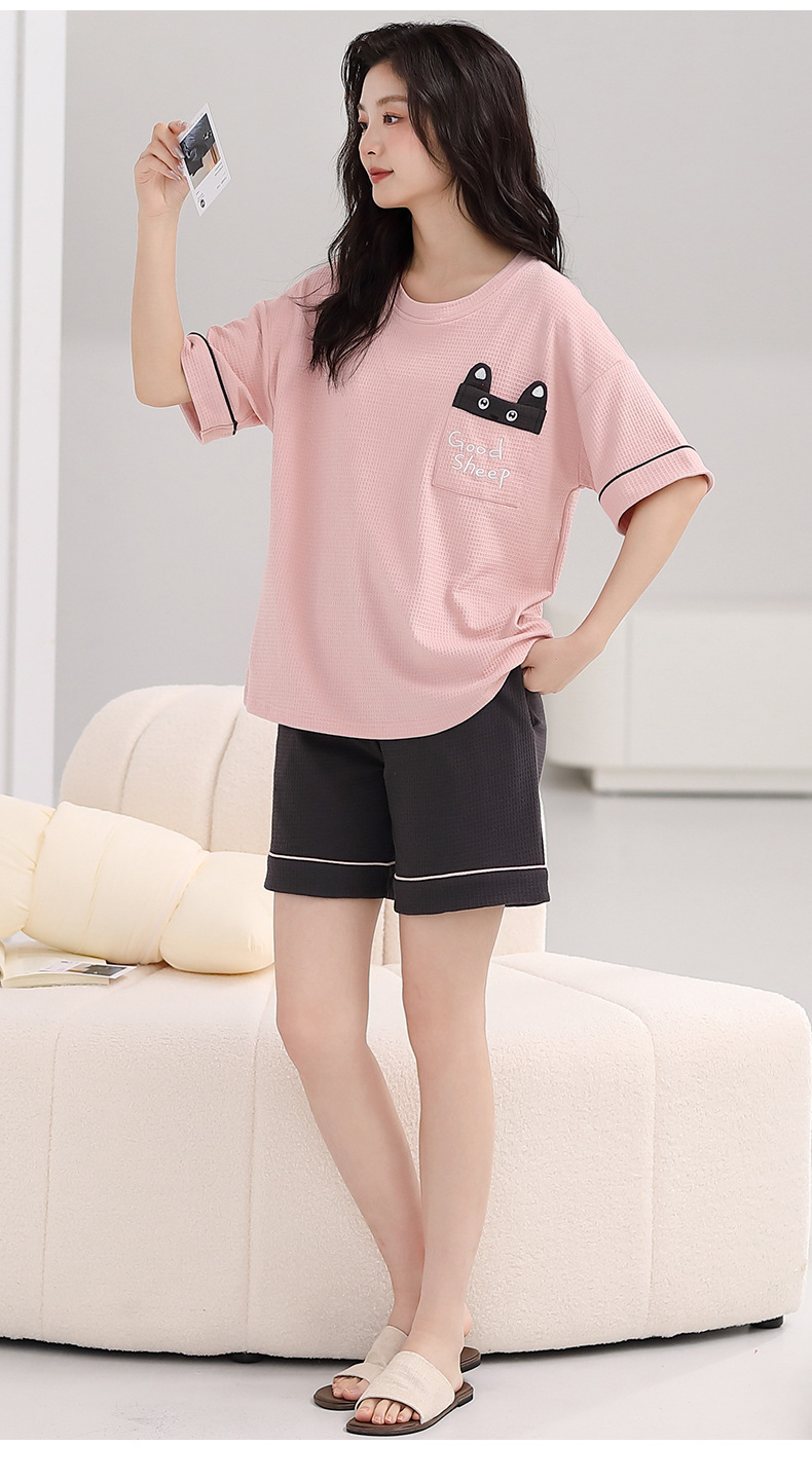 パジャマ女性の夏の純綿ワッフル半袖半ズボンは胸パッドの薄いサイズがあります。