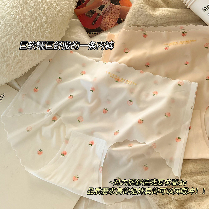 夏の速乾無痕氷糸下着女性中腰超薄マスクズボン桑絹糸股いちごプリント女性下着