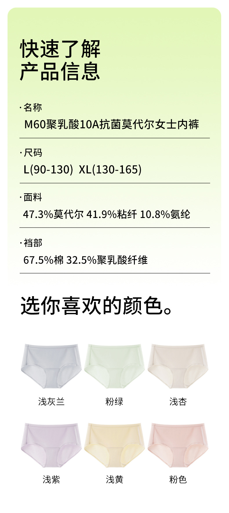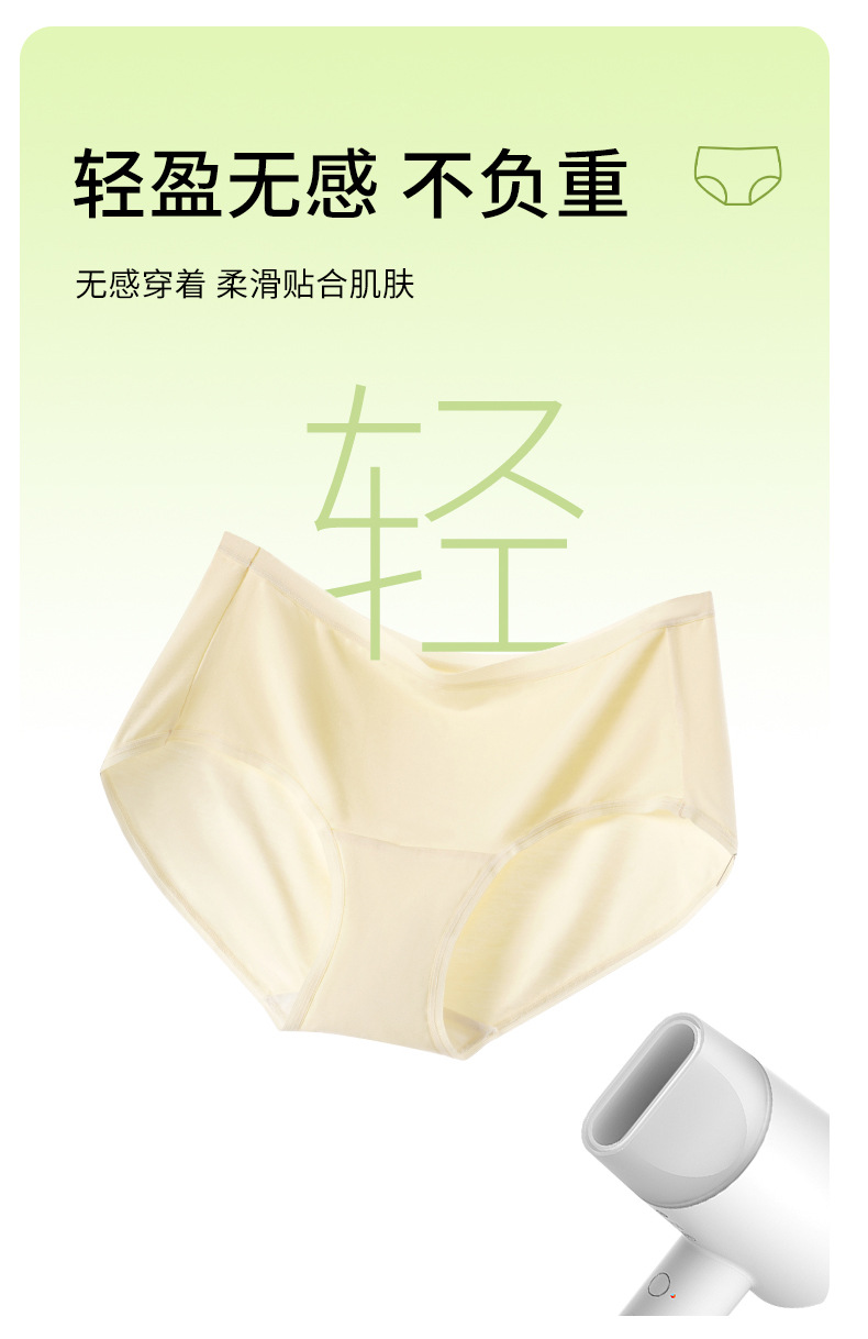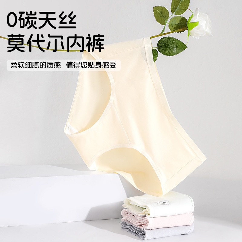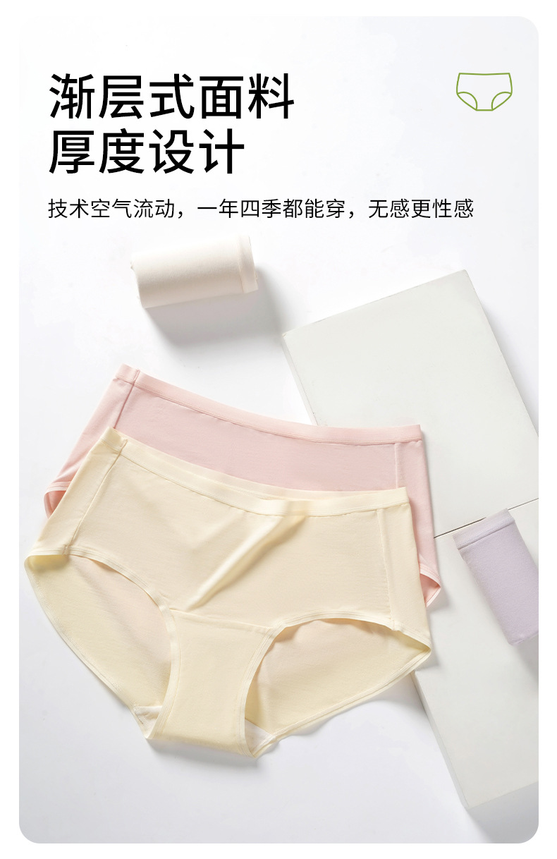 60支莫代尔女士内裤聚乳酸无痕简约中腰舒适加长裆三角裤女10A级