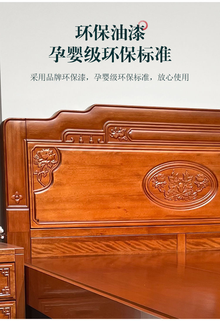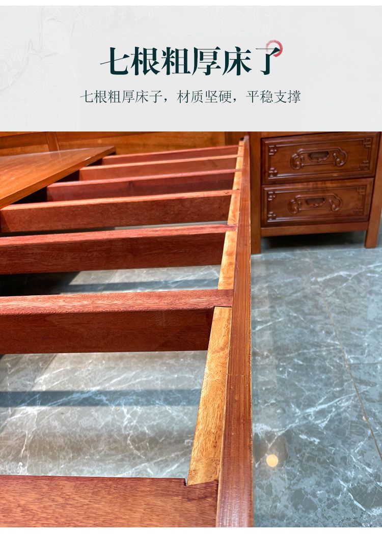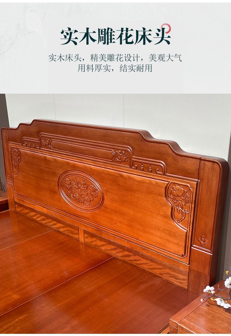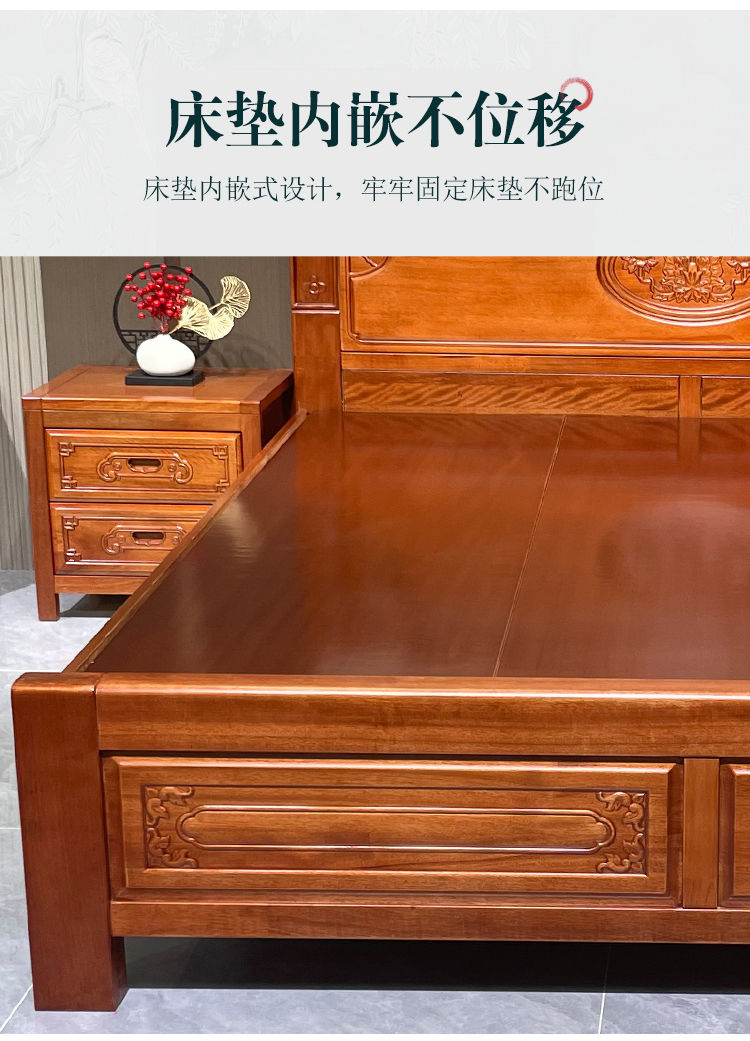 花梨木無垢材中国式ほぞ穴組み立て全無垢材ベッド1.8ダブルベッド1.5主寝室アンティーク彫刻明清古典