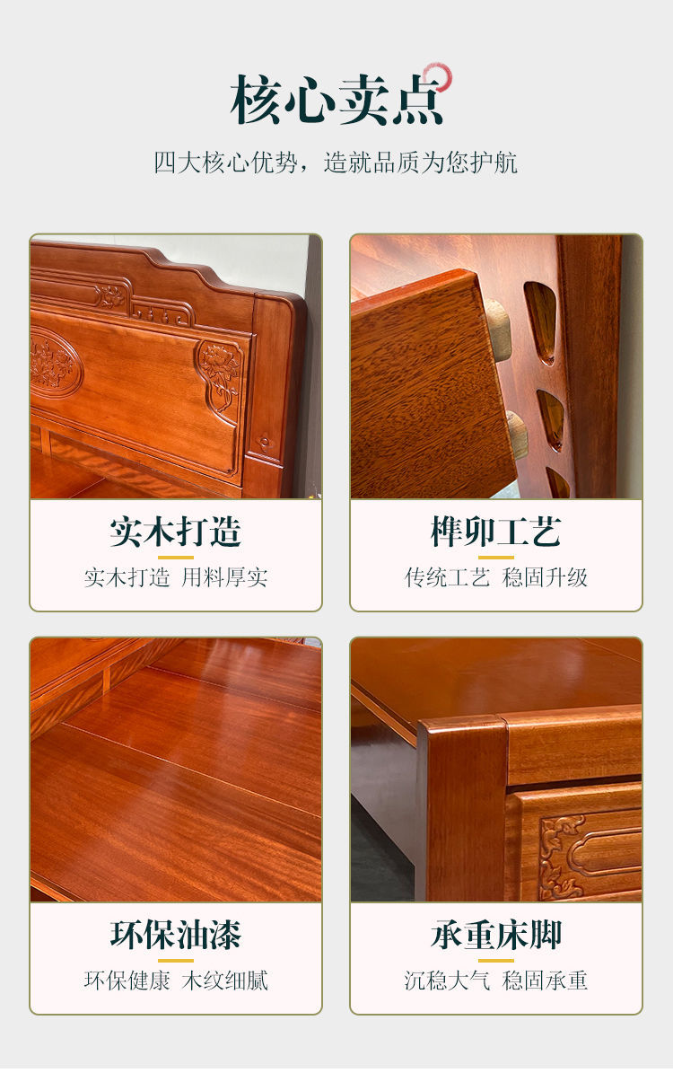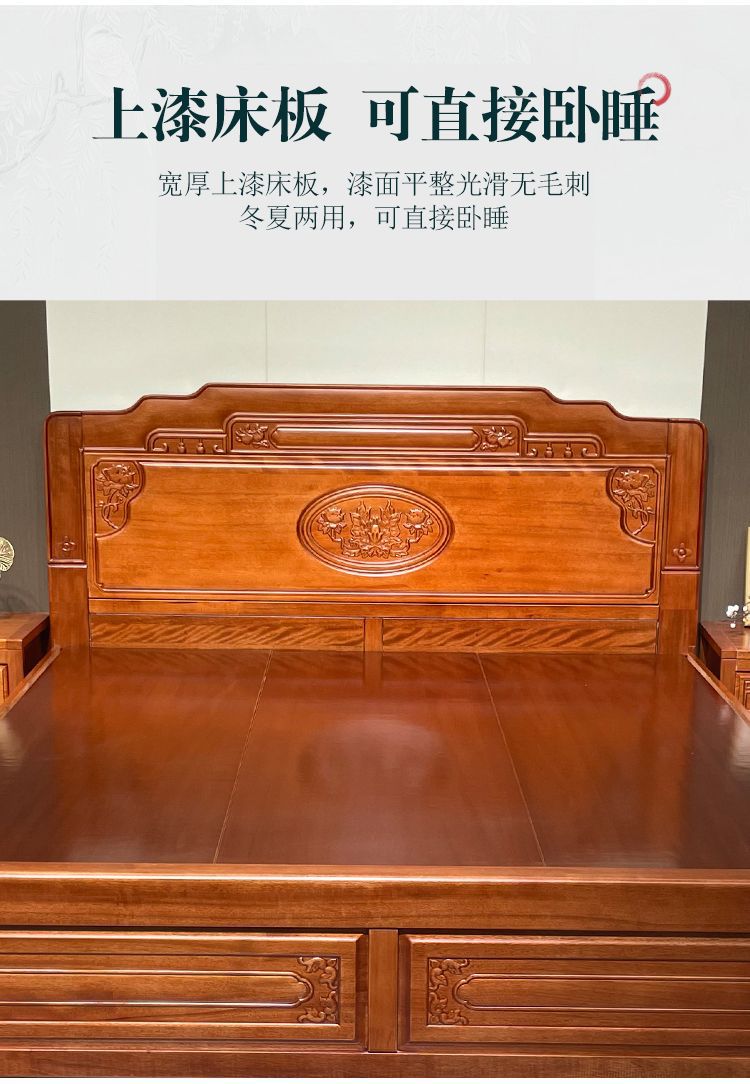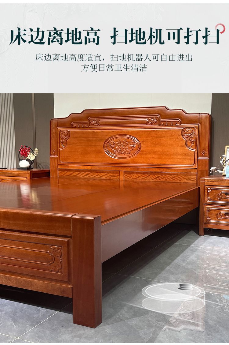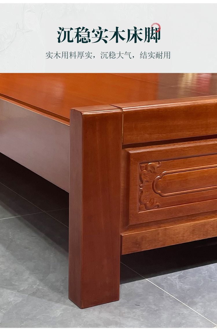 花梨木無垢材中国式ほぞ穴組み立て全無垢材ベッド1.8ダブルベッド1.5主寝室アンティーク彫刻明清古典