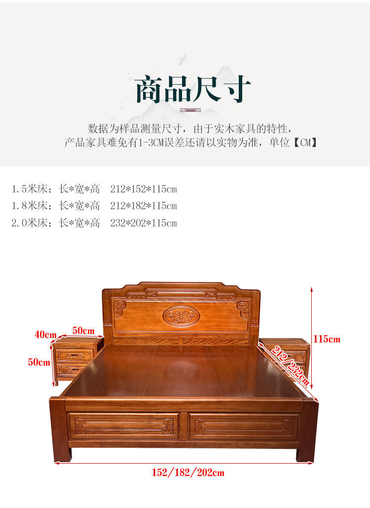 尺寸 120*200cm【榫卯结构】,150*200cm【榫卯结构】,180*200cm【榫卯结构】,200*220cm【榫卯结构】