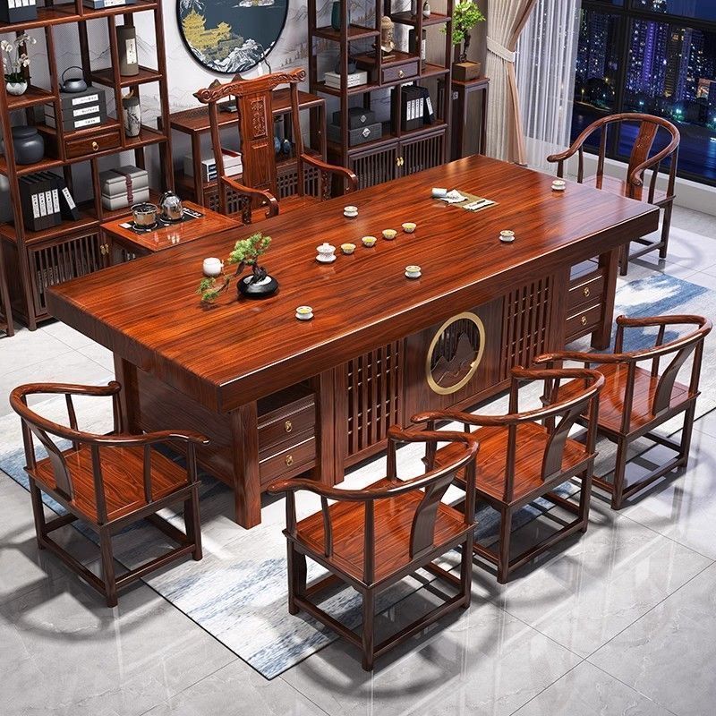 新しい中国風ローズウッド無垢材大型ボードティーテーブルと椅子の組み合わせオフィスカンフーティーテーブルティーテーブルオールインワンセット