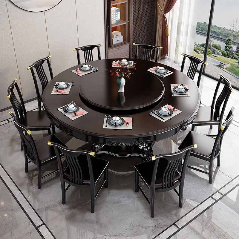 新しい中国風の全無垢材のダイニングテーブルと椅子の組み合わせ大型ラウンドダイニングテーブル複数人用ラウンドテーブルホームレストランホテルのダイニングテーブルターンテーブル付き