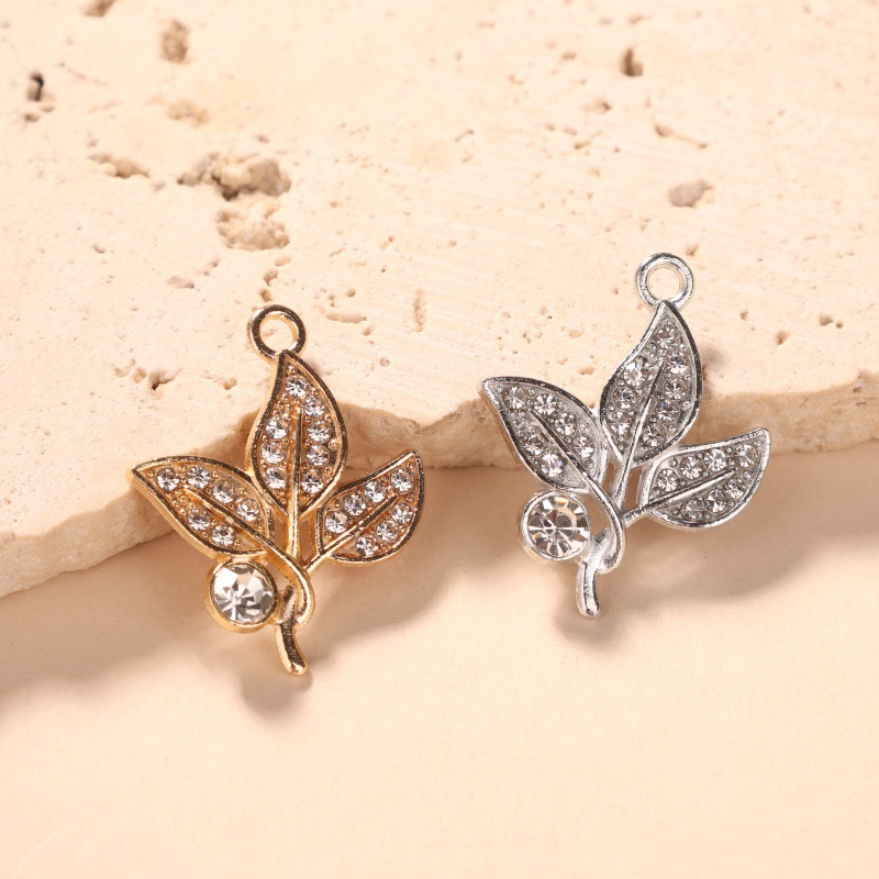 时尚树叶点钻吊坠耳坠个性饰品配件满钻合金挂件DIY挂件电镀饰品